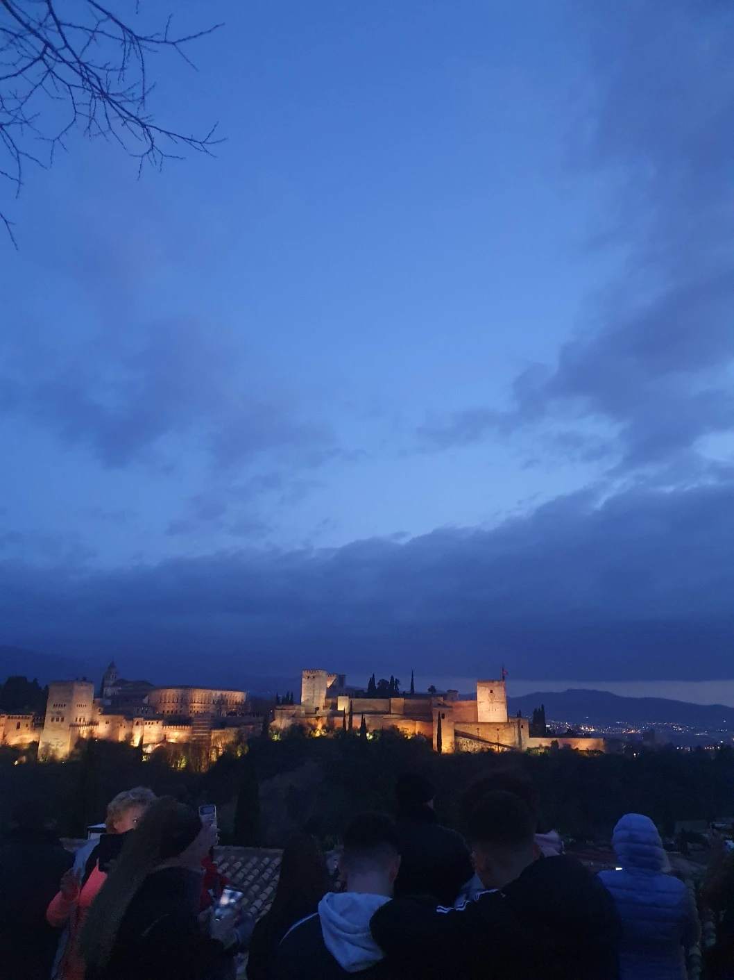멀리서 보는 조명을 받은 알람브라궁전은 아름답고도 웅장하면서도 쓸쓸한 느낌이었다. 서사가 있는 역사가 주는 무게감과 더불어....