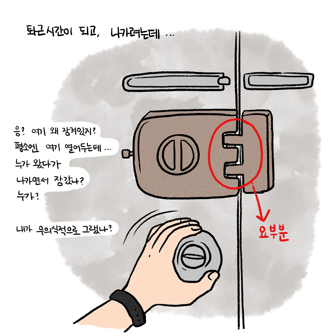 열린 문을 확인하고 다가가서 그 문을 열었을 때