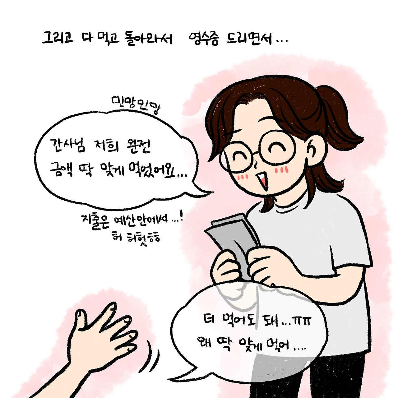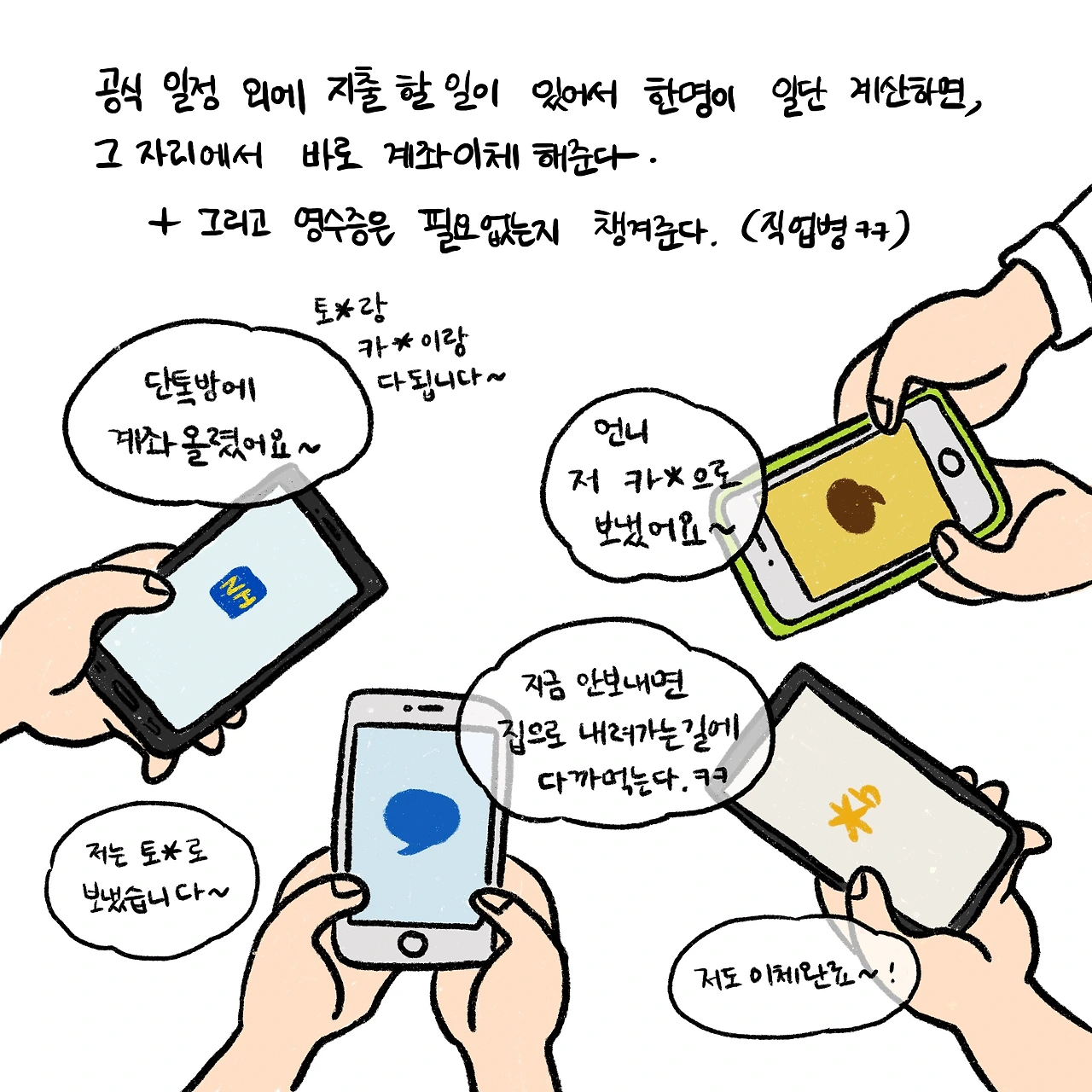 식사 후에 있는 자리에서 밥값을 이체하는 것과 영수증 필요한지 물어보는 것