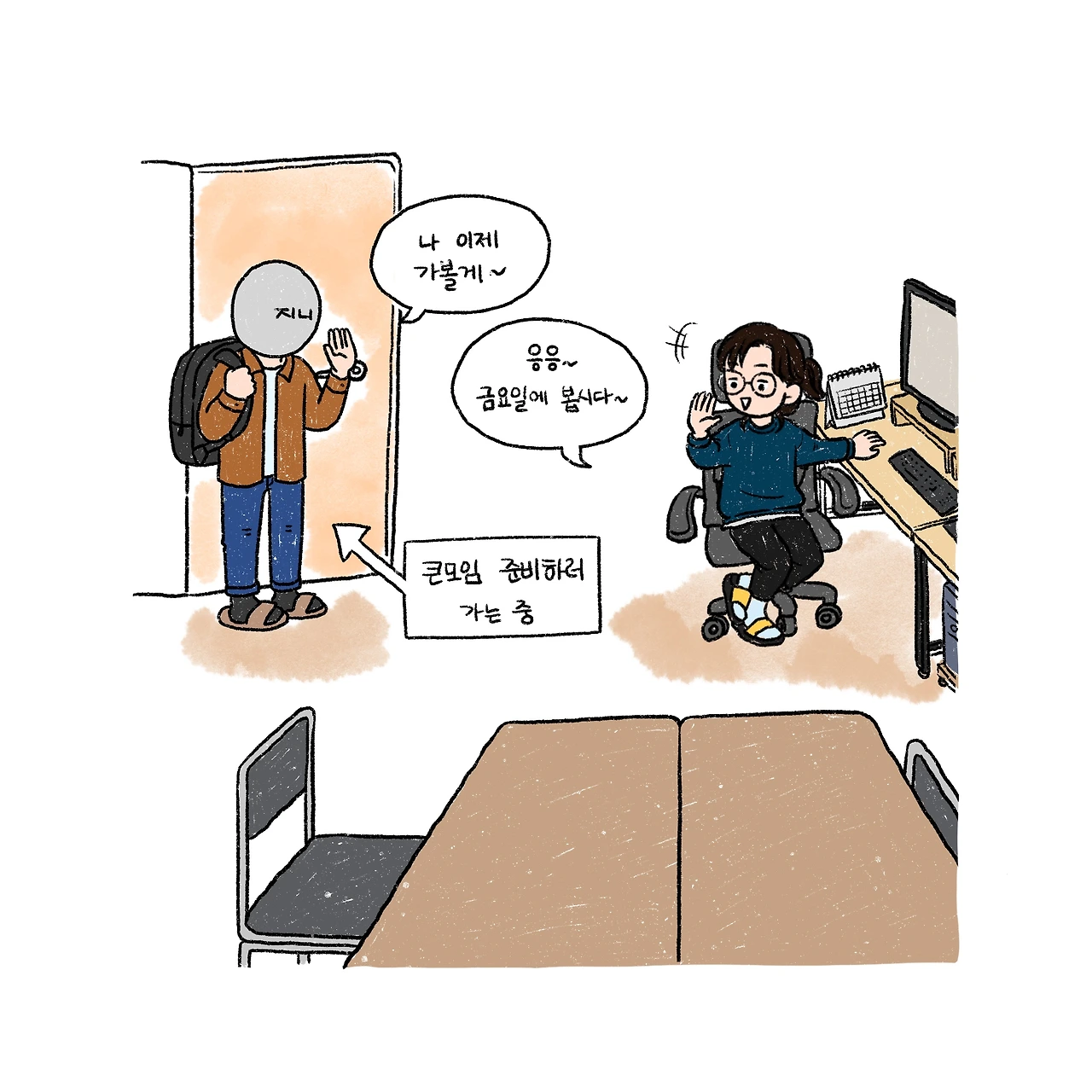 모임 전에 모임 준비하러 잠깐씩 들리는 간샴님.