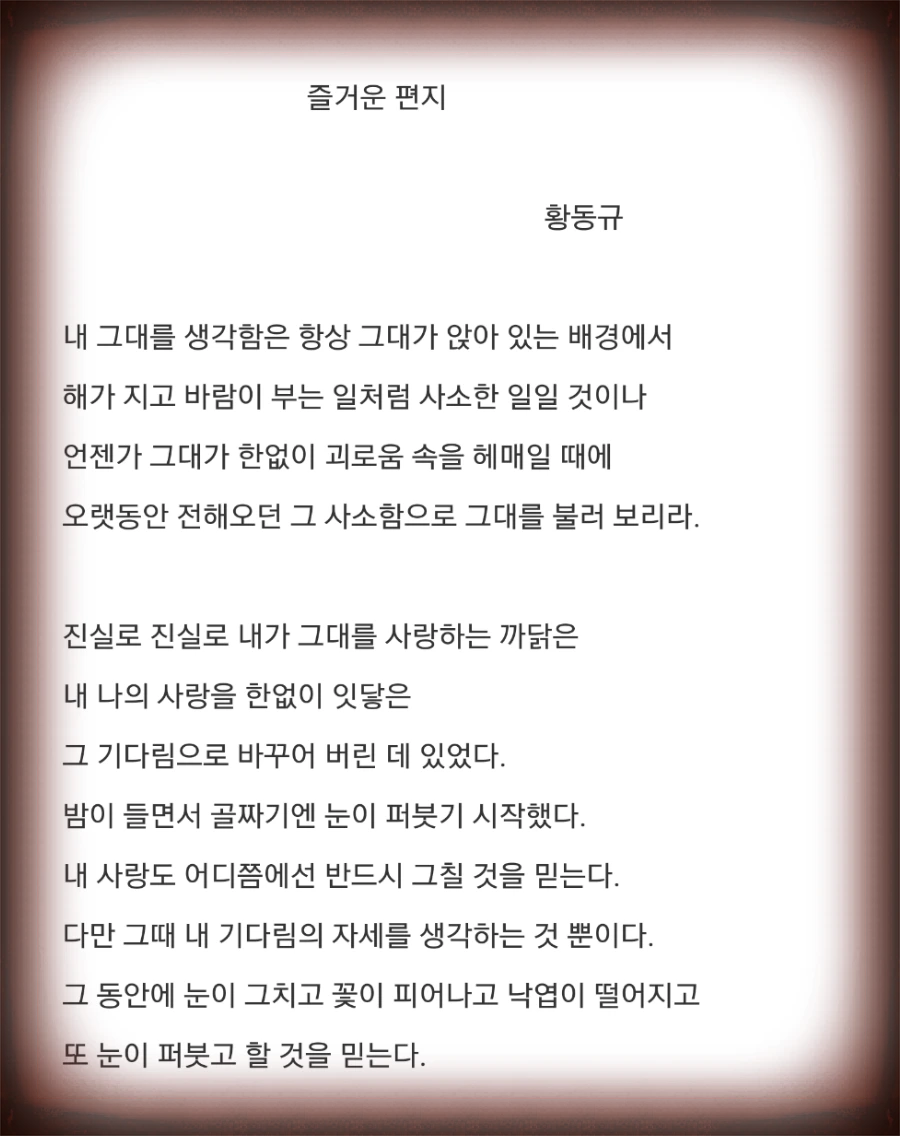 황동규의 즐거운 편지ᆢ를 읽었던 그때를 회상하며...