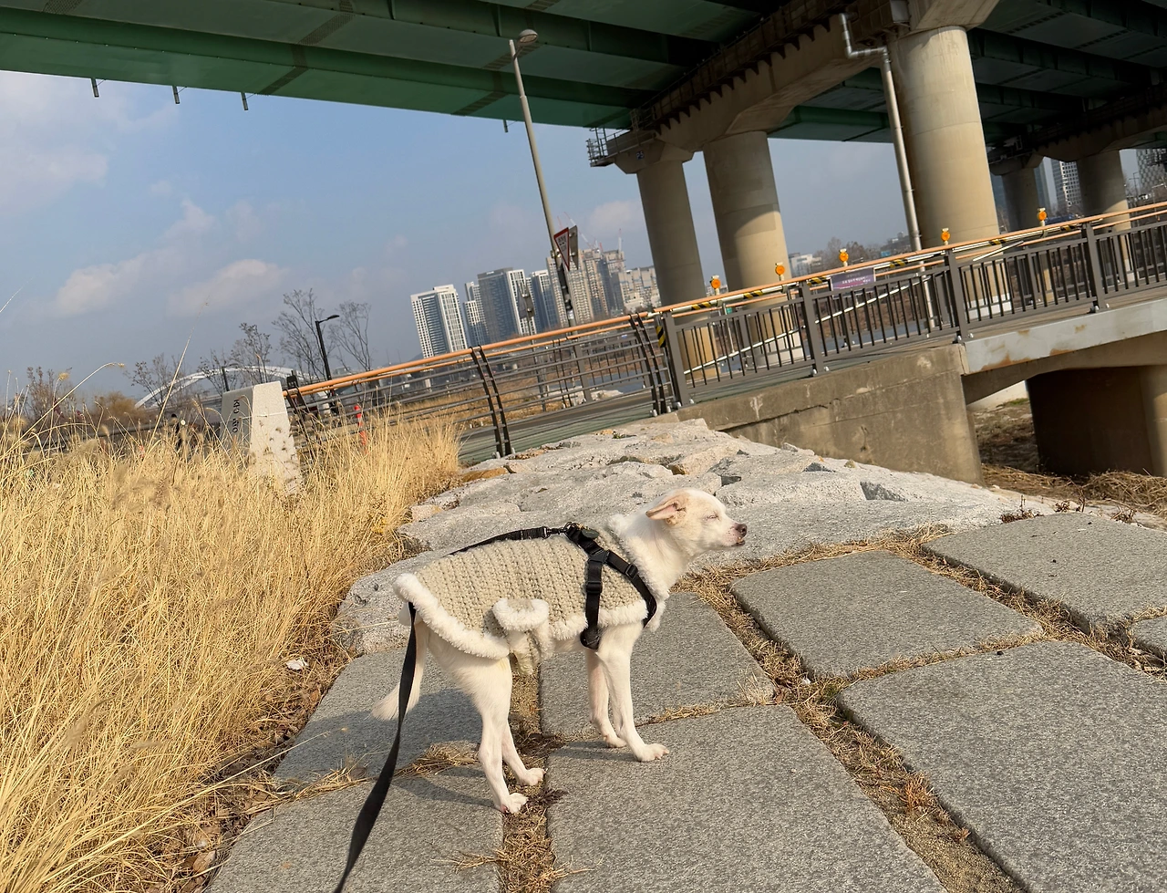노견은 하루하루 세상을 향한 속도를 늦춰간다. 계단을 오를 때면 중간에 숨을 고르고, 예전에는 산책길을 씩씩하게 걷던 녀석은 이제는 짧은 거리에서도 발걸음을 멈춘다. 젊었을 때의 가벼운 도약은 이제 조심스러운 움직임으로 바뀌었다. 무시하던 강아지 계단을 이제는 당연하게 사용하며, 길가의 하수구도 더 이상 뛰어넘지 않고 돌아간다. 때로는 낙엽이 쌓여있는 공원을 걷다가, 녀석이 문득 멈춰 서서 바람의 냄새를 맡는 모습에서 삶의 여유를 배우기도 한다. 그런 모습들을 보며, 나 역시 내 삶의 리듬을 조율하고 있음을 깨닫는다.