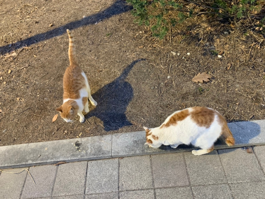 몇 주가 지났을 무렵, 새로운 발견이 있었다. 익숙한 치즈색 고양이가 놀이터에 있을 때, 또 다른 치즈고양이가 가끔씩 녀석과 함께 있는 것을 목격하게 된 것이다. 처음에는 '아, 치즈 고양이가 두 마리구나' 정도로만 생각했다.