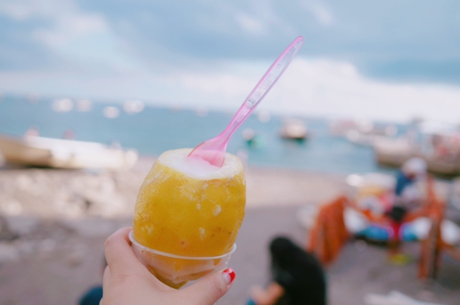 바닷바람을 맞으며 노란 셔벗을 입에 넣으면, 얼음처럼 시원한 질감 뒤로 달콤하면서도 살짝 씁쓸한 뒷맛이 따라온다. (사실 나는 그 쓴맛 때문에 몇 입 먹고 내려놓았지만, 그 몇 입만으로도 여운은 충분했다.)