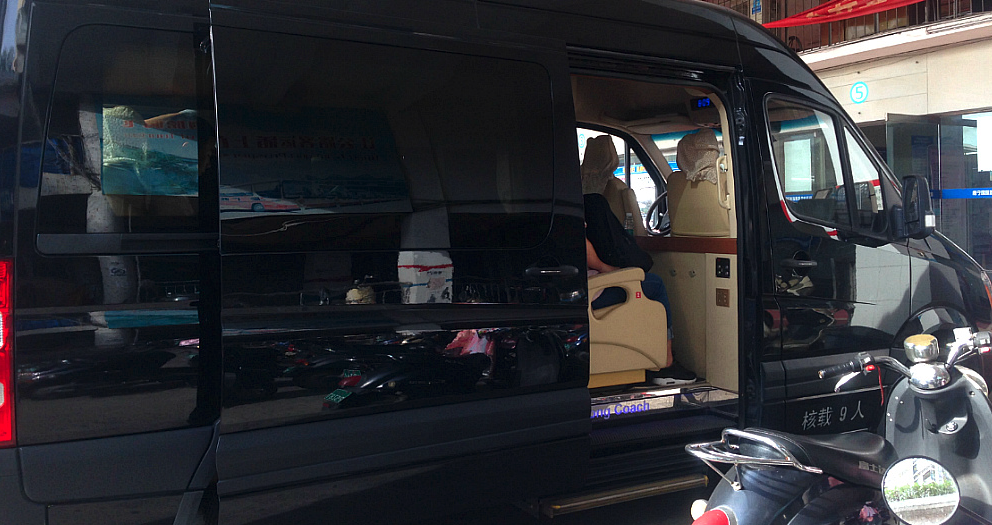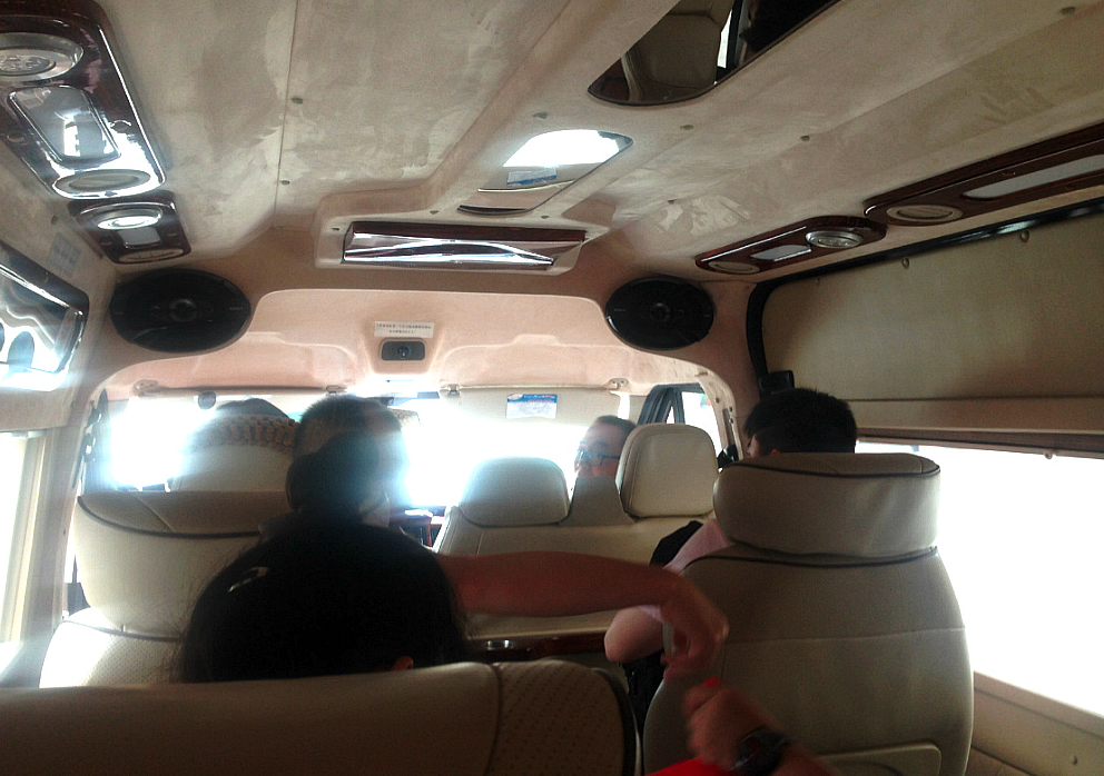 그래도 다행히 창가 자리에다 승합차 컨디션이 매우 고급이어서 아무 불편 없이 갔는데 나와 7번 좌석에 끼여 앉은 6번 아저씨가 조금 불쌍했다. 하지만 여행을 떠나는 흥겨운 분위기가 가미되어서 인지 그 아저씨는 전혀 불편해하지 않고 가는 내내 책에서 손을 떼지 않고 읽는 묘기를 보여주었다. 한 글자만 봐도 멀미 기를 느끼는 나로서는 정말 그분이 부럽기 짝이 없었다. 그 아저씨는 짐은 또 어찌나 바리바리 싸 갖고 가시는지 검문에 한 번 걸려 짐 검사를 당하기도 하셨다. 아무튼 나만 외국인이고 모두 중국 사람들. 그런데 다들 착했다.