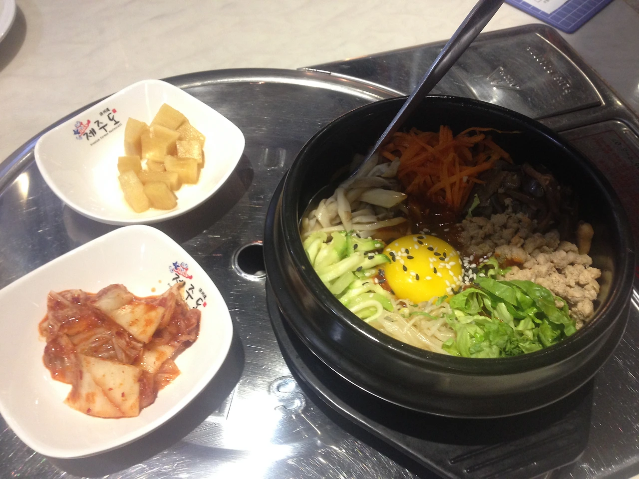 시내에 도착하자마자 너무 배고파서 근처 한국식당을 찾아 돌솥비빔밥을 시켰는데 날계란에 고기까지 들어가 혹시 배가 아플까 봐 고기는 다 빼내고 (나는 고기를 먹지 못한다) 먹었는데도 소화가 안되고 배가 아플 것 같은 예감이 들어서 불안해졌다. 내일모레 아침부터 8시간 정도 차를 타고 중국-베트남 국경을 넘어야 했기에 몸조심을 해야지 싶었다. 그 당시 나는 조금은 심각한 위염이 있었기 때문에 먹는 것을 특별히 조심하고 있어서 중국에서 중국다운 요리를 예전처럼 마구마구 시켜 먹을 수 없어 아쉬웠던 때였다. 게다가 고기를 먹지 못하게 되어버려 중국에서는 밥을 찾아 먹는다는 게 하루의 아주 큰 고민거리로 자리 잡게 되었던 것 같다.