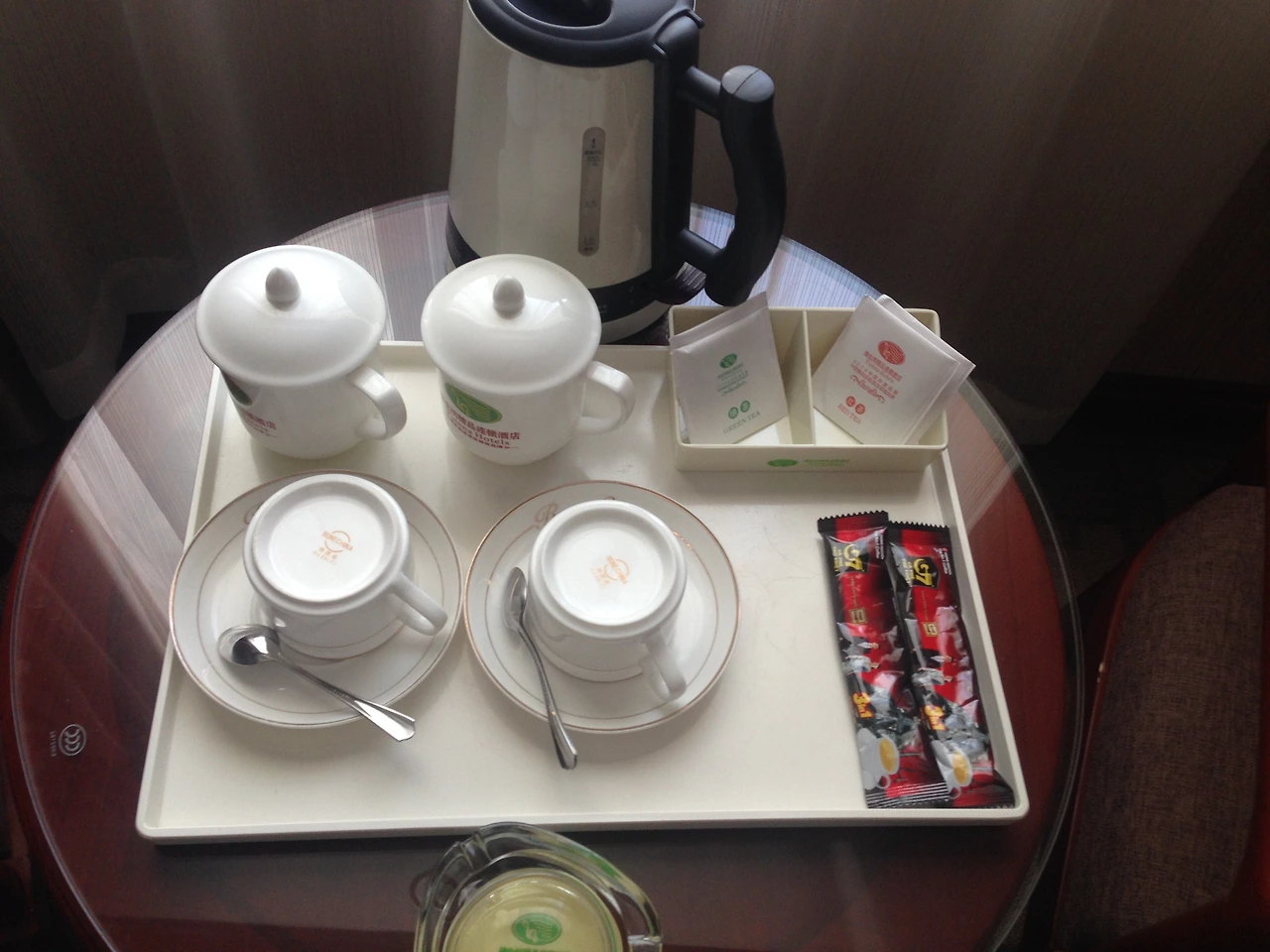방은 조금 작았는데 차를 끓여 마실 수 있는 세트까지 완벽하게 구비되었고 특이한 점은 베트남 국경과 가까워서 그런지 베트남 인스턴트커피까지 들어가 있었다. 에어컨은 시원했고 따뜻한 물도 콸콸 나와 따뜻하게 오랫동안 씻고 나와 티브이를 켜고 에어컨을 쐐며 그날은 그렇게 편안한 하루를 보내며 내일 있을 장거리 여행을 위해 충전했다.