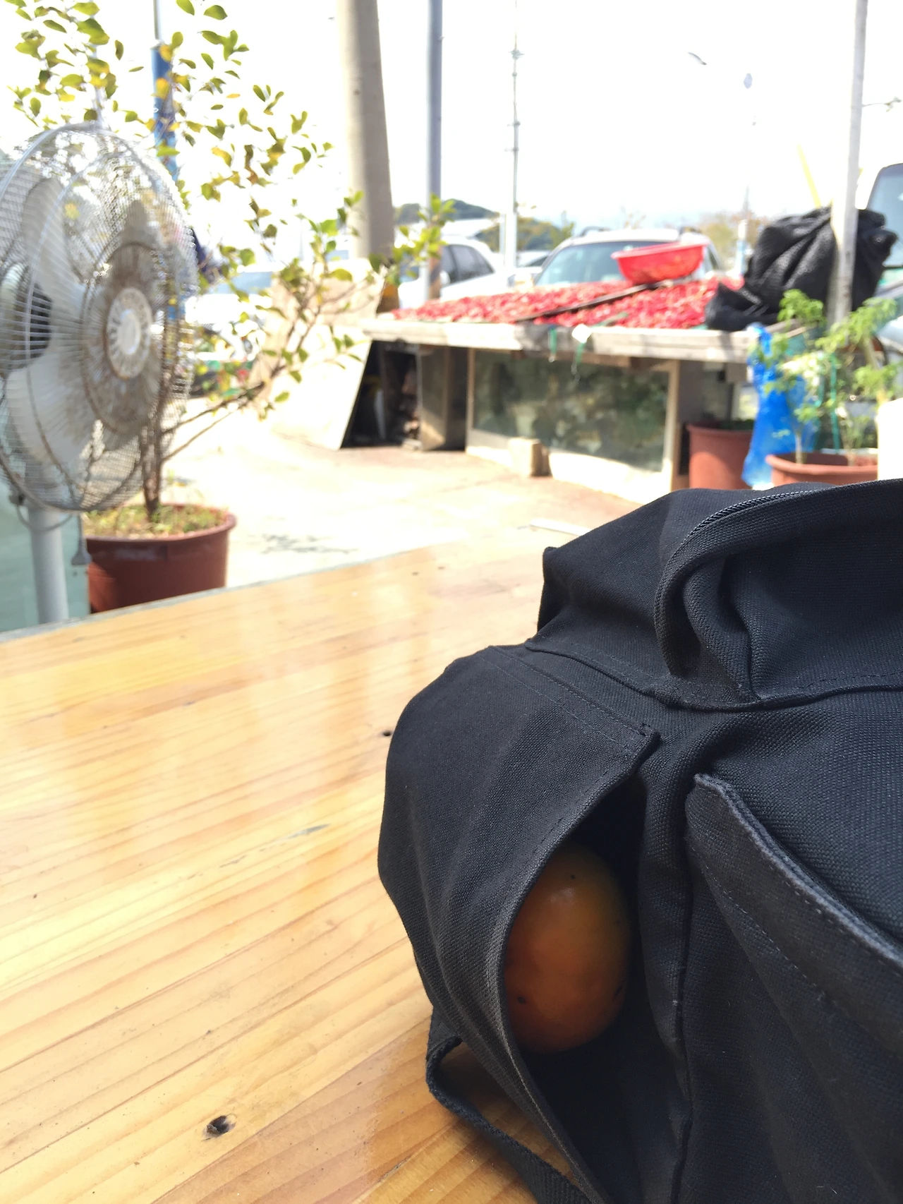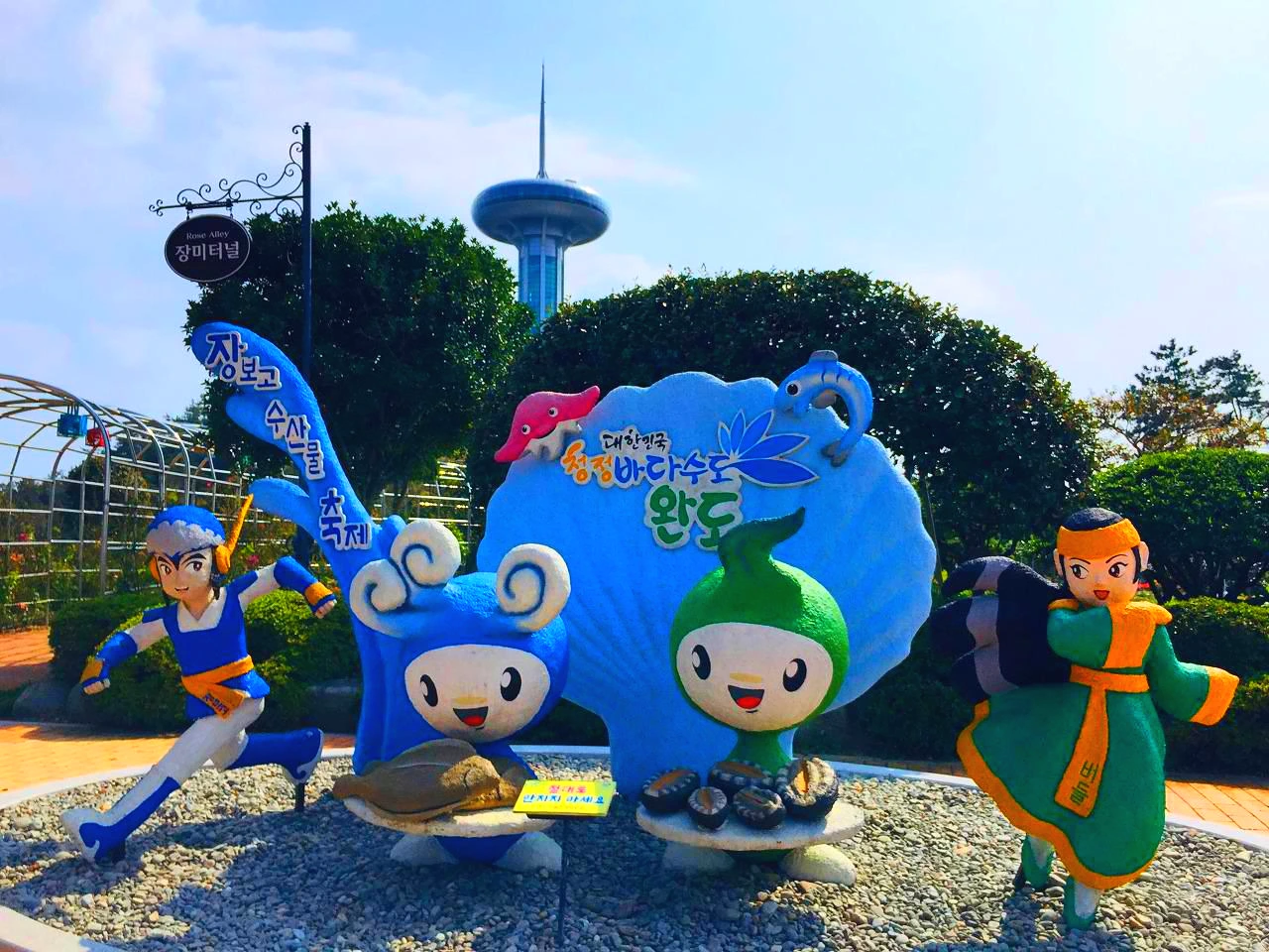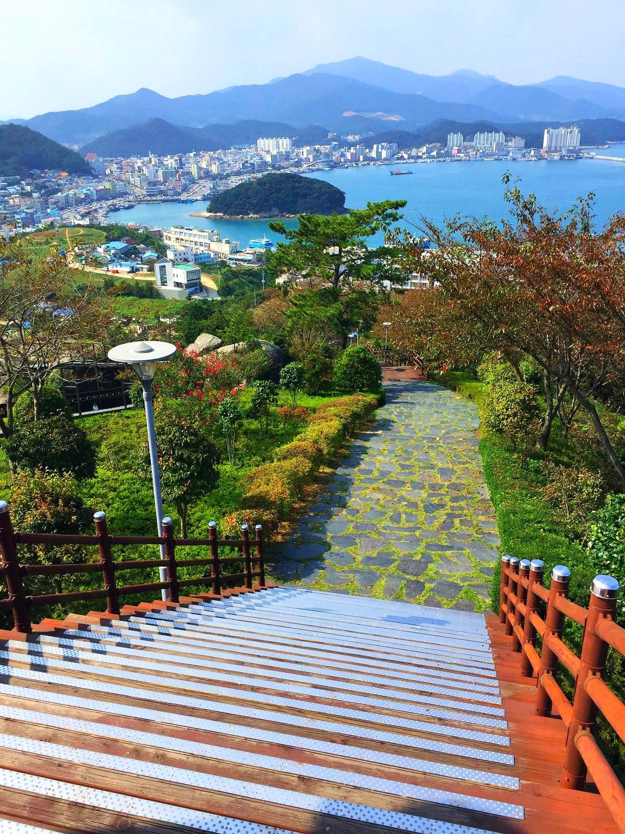 식당을 찾아 헤매다 그나마 사람들이 북적거리고 그 와중에 혼자 앉아 식사를 하시는 분이 보여 망설임 없이 그분 옆 옆의 자리에 앉아 해물뚝배기를 주문했다. 해물뚝배기는 나 혼자 산다에서 데프콘이 먹을 때 나도 정말이지 한 번은 꼭 제주도에 가서라도 먹고 싶었던 음식이었다. 앞에 앉은 손님들은 해물뚝배기에 모둠 생선구이까지 시킨다. 생선구이도 정말 먹고 싶었는데 2인 이상만 주문이 가능해서 1인으로는 제대로 된 생선구이 먹기가 정말 힘들구나 싶었다. 집이 근방이라면 싸가서라도 먹고 싶을 만큼 정말 다양하고 먹음직스러운 생선구이었기 때문이다. 역시 바다를 앞에 두고 있는 지역의 해산물은 서울 같은 도시에서 맞볼 수 있는 음식이 아니구나 싶었다. 드디어 주문한 해물뚝배기가 나왔다. 생각만큼 해산물이 쌓여 있거나 푸짐해 보이진 않았지만 콩나물 해장국 같은 양념애 전복을 비롯한 각종 해산물이 종류별로 하나, 둘 들어있고 말 그대로 바닥까지 싹싹 긁어서 마지막 국물 한 방울까지 다 먹어 버렸다. 점심을 너무 많이 먹으면 배를 타서 속이 거북할까 살짝 겁이 났지만 음식이 위에 부담을 주거나 양이 아주 많거나 하지 않아서 의외로 속이 편안해진 느낌이었다. 계산을 하고 나가려니 주인분께서 올해 감이 아주 맛있게 익었다며 바로 먹어도 깨끗하다고 디저트로 먹으라며 하나를 건네주셔서 가방 안에 소중히 넣어 제주까지 갖고 가서 저녁때 대충 씻어 먹었더니 정말 신선하고 달콤한 게 개꿀맛!. 아마 선물로 받아서 기쁘고 괜히 흥이 나서 더 맛있었던 것 같다. 밥을 먹었더니 이제 2시간 30분 정도의 시간이 남아 있었다. 완도에서는 무엇을 하며 시간을 보내야 하나 하고 블로그를 뒤져보니 다도해를 한눈에 볼 수 있는 전망대가 있는 완도타워 쪽으로 걸어 가보기로 했다.