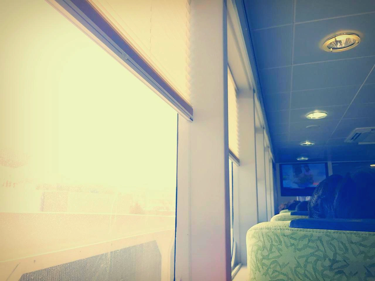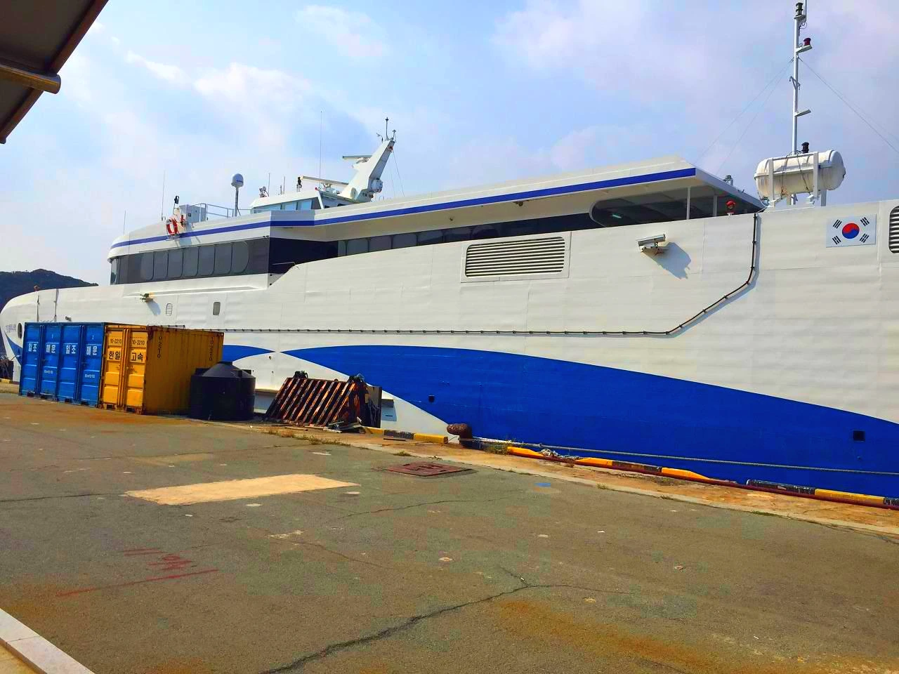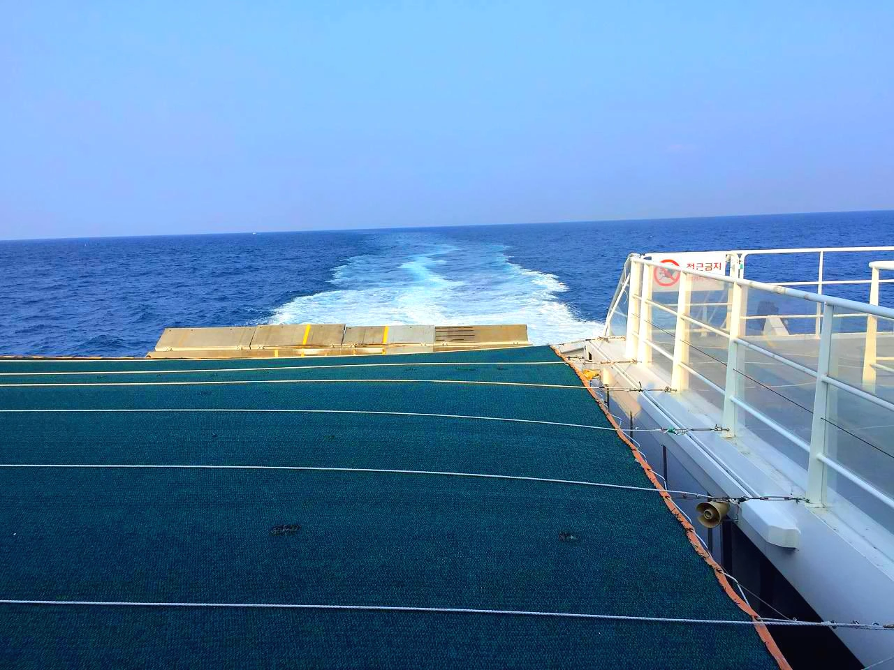 블루나래호는 1등석과 2등석으로 나뉘는데 가격차이는 6000원가량이다. 1등석은 배의 앞쪽으로 전망이 더 좋고 의자가 널찍하고 편해 보였지만 큰 차이도 없어 보여 6000원을 아껴 카페를 하루 더 가자 싶어 2등석으로 예매했다. 가격은 편도로 4만 원 정도. 배에 오르기 전에는 표검사와 함께 신분증 검사 그리고 체온검사를 마쳐야 한다. 배에 들어가기 전에는 입구에서 직원이 자리 번호를 확인하고 자리로 안내를 해주는데 혹시 2등석 손님이 1등석으로 가 앉을까 사뭇 철저하게 관리를 하고 있었다.