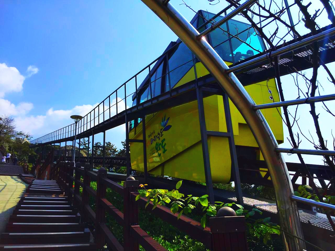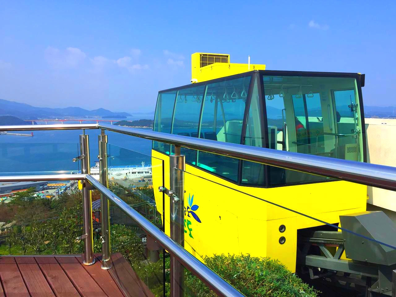 그냥 걸어서 올라가도 되지만 완도 모노레일을 타보고 싶어서 매표소로 들어가 6000원짜리 편도 성인 티켓을 구매하고 탑승장으로 올라가려니 매표소 직원분께서 가방이 무거워 보인다고 가방을 맡아줄 테니 가볍게 올라갔다 오라고 하신다. 갑자기 받은 친절에 정말 깜짝 놀라고 감동받아 덕분에 홀가분하게 가방 없이 모노레일에 오를 수 있었다. 모노레일은 10분 정도 걸리며 완도타워 쪽으로 천천히 올라간다. 올라가면서 아래쪽으로는 멀리 바다를 위쪽으로는 완도타워와 공원을 바라보며 갈 수 있다.