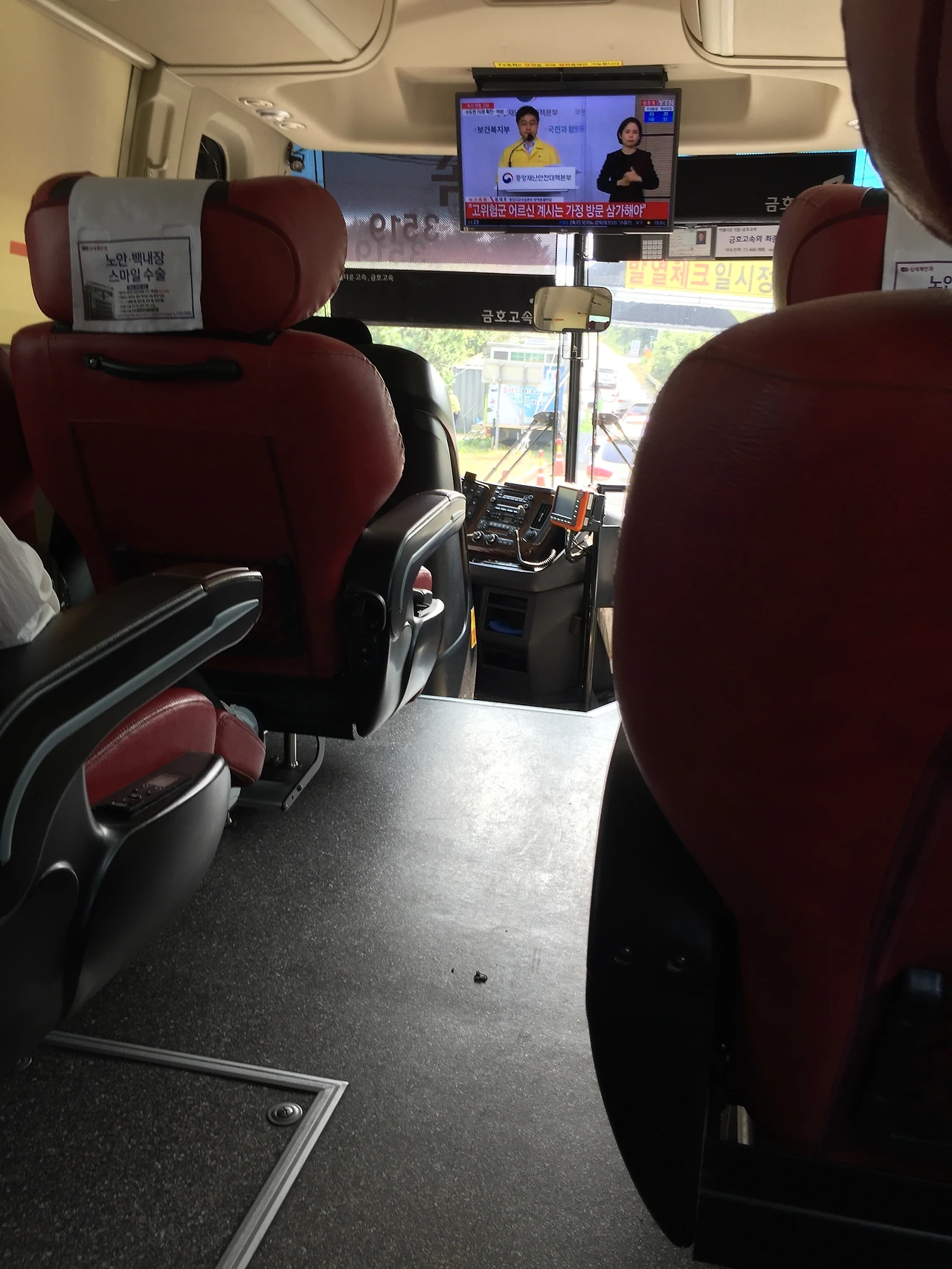 제주항에 내려 작은 배낭을 메고 시내버스 정류장으로 나갔더니 버스가 여러 개고 서귀포로 가려면 시청 쪽에서 빨간 버스로 갈아타야 3-4번 정차 후 고속버스 마냥 지루하지 않고 쭉 갈 수 있었다. 예전에 제주를 왔을 때에는 일 때문에 와서 제주시 근방에만 머물다 말았는데 이번에는 과감하게 서귀포시에 호텔을 정해서 호텔까지 가려면 버스로 1시간 반 정도 걸렸던 것 같다. 빨간 버스가 한라산 쪽으로 올라가자 날이 좀 더 서늘해진 느낌이 들었다.
