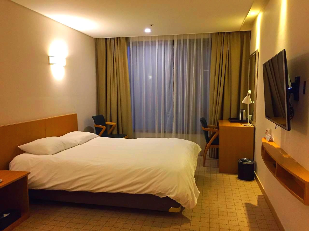 사거리 근방에서 내려 쭉쭉 걸어가니 멀리 내가 예약한 호텔이 보였다. 리뷰는 크게 좋지 않았지만 하루 3만 원가량에 깨끗한 욕실 그리고 바다가 약간이라도 보인다면 나는 불평하지 않을 것 같았다. 호텔 체크인은 조금 시간이 걸렸다. 나보다 먼저 오신 5-6분의 손님들이 체크인을 하면서 주차장 위치가 애매해서 찾기가 너무 힘들다는 컴플레인을 계속 거셔서 정말 리뷰대로 이 호텔의 서비스는 별로란 말인가 하면서 걱정이 되기 시작했다. 드디어 체크인을 마치고 방안에 들어섰다.
