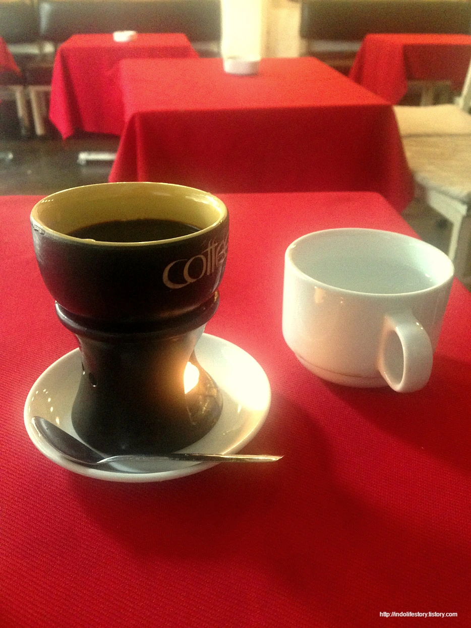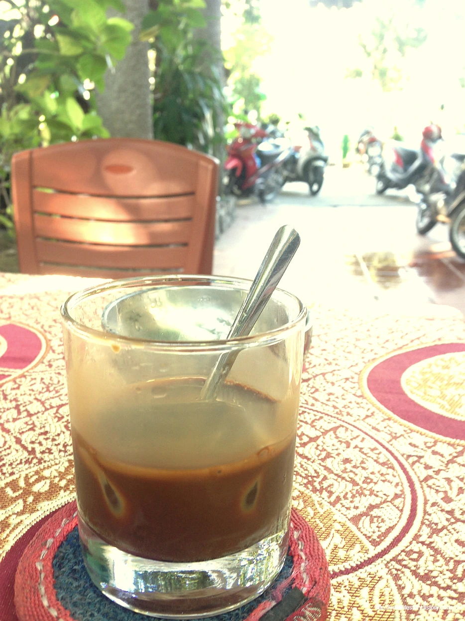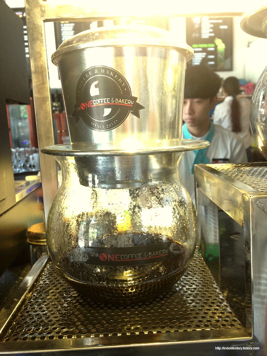 이 커피는 카페 (Cafe) 스아 (Sua) 놈(Nong)으로 따뜻한 밀크 커피이다. 커피가 한 방울씩 떨어지면서 미지근하게 식기 때문에 커피 컵 아래에 뜨거운 물을 넣고 컵을 담아 커피를 따뜻하게 하는 것인다