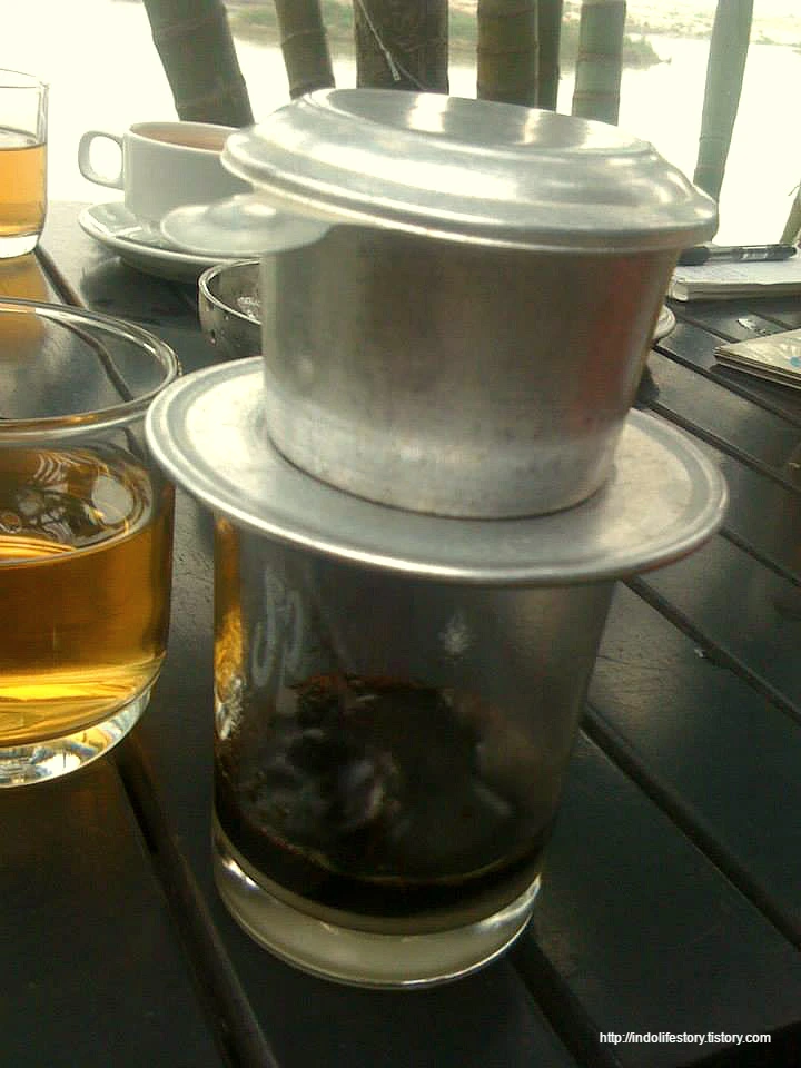우리가 흔히 아는 베트남식 블랙커피 (Caphe Den)는 컵 안에 아무것도 들어 있지 않지만