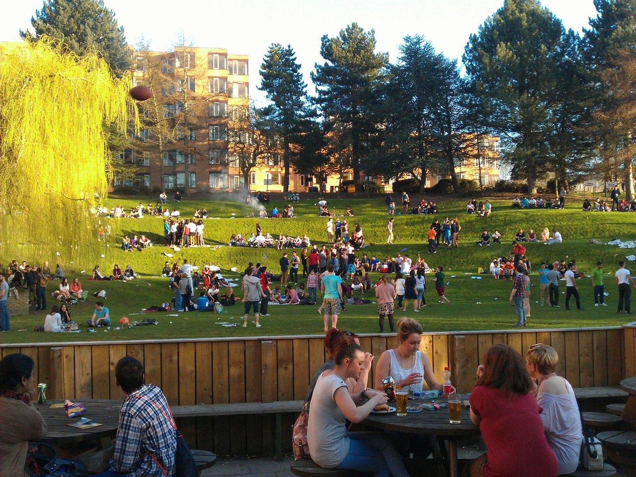 대학은 축제 기간이 시작되었다. 논문 때문에 하루도 쉴 수 없었던 우리 동기들에게는 정말 힘든 시간이었다. 3-4일간 계속된 축제의 소음 때문에 도서관에서 논문을 쓴다는 것은 불가능해져서 하루는 우리도 축제에 참여해 보았다. 그 당시 내 주변에 있던 친구들은 많이 없었기 때문에 나와 벨기에 친구 사네는 둘이 손 잡고 축제가 벌어지는 곳이 훤히 보이는 층계식 잔디 어딘가에 자리를 잡고 앉았다. 그나마 사네가 돗자리를 준비해 와서 어느 정도 우리도 축제에 참여할 자격이라도 받은 듯한 느낌이 들었다. 다들 삼삼오오 모여서 준비해 온 맥주를 마시고 있었는데 사실 나는 유럽 대학의 축제가 어떻게 진행되는지 까맣게 모르고 있었다. 맥주나 BBQ 거리를 사 와서 먹고 마시며 놀며 공연도 보고 행사에 참여도 하고 그런 식이었다. 만약 음식물이나 음료를 준비해 오지 않았다면 학교 내 매점이나 바에서 사 오면 되는데 가격이 조금 비싸서 그랬었나 우리는 그냥 멍하니 잔디밭 위에 펼친 돗자리에 멍하니 앉아서 구경만 했다. 다행히 그때 사네가 속한 사이클 서클에서 나온 사람들이 자리를 잡고 맥주와 BBQ를 즐기고 있어 그 자리에 참여하여 어느 정도 신나게 놀았던 것 같다. 그럼에도 불구하고 우리는 배가 고팠다. 차마 그들의 BBQ까지 얻어먹을 수가 없었기 때문이다. 축제는 건전하게 저녁 5시경에 끝났고 학생들도 거나하게 취해서 다들 집으로 혹은 바로 발길을 돌렸다. 남은 사람은 나와 사네, 그리고 친하게 지냈던 영국 대학생 팀과 크리스. 사이클 서클에서 굽다 남은 햄버거 패티를 남겨두고 가서 이걸로 햄버거를 만들어 먹었으면 좋겠다 생각했을 때, 갑자기 팀이 잔디 계단 아래로 내려가더니 사람들이 버리고 간 BBQ 석쇠와 숯, 일회용 접시 등등을 주워 왔다. 게다가 큰 햄버거 빵 한 봉지까지 주워 와서 우리는 석쇠에 숯을 올리고 패티를 구워 맛있는 햄버거를 만들어 먹고 학생들이 버리고 간 따지 않은 맥주병들도 모아 모아서 우리끼리의 소박한 파티를 즐길 수 있었다. 석쇠 위에서 타고 있는 숯불을 바라보면서 앞으로 시간이 얼마 안 남았으니 논문 쓰기에 더 박차를 가하겠다는 지루한 생각에 잠긴 채.