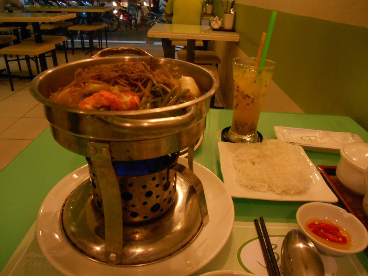 혼자가 Hot Pot이 땡긴다면 쌀국수 체인점 Pho 66에서 1인용 쌀국수 hot pot이 있다. 가격은 3000원 정도로 우선 hot pot 안에 들어가 있는 해산물과 야채를 끓인 후에 공기에 쌀국수를 담고 그 위에 해산물이나 채소를 얹어 먹으면 해산물 쌀국수 맛과 다를 것이 없다. 아니 그 보다 더 시원한 맛을 느낄 수 있다. 게다가 당당하게 Hot Pot에서 혼밥도 가능한 곳!