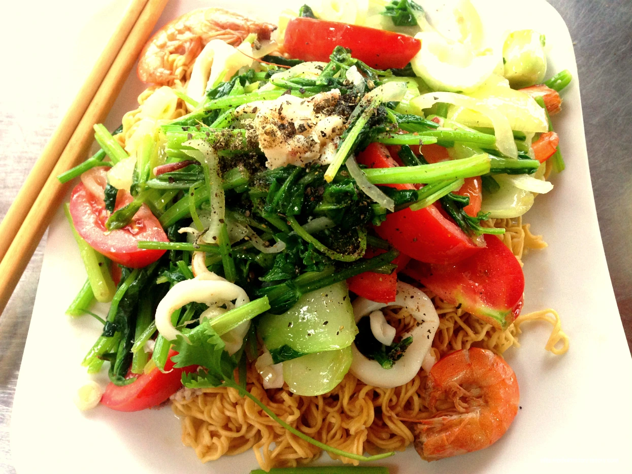 고급 레스토랑에 가면 인스턴트 누들이 아닌 우리나라 소면 같은 국수와 함께 볶는데 맛이 너무 고급 져서 별로였다. 베트남 해산물 식당에 가면 거의 있는 메뉴로 만약 밥을 팔지 않는다면 이 미사오 하이산으로탄수화물을 채워 보자