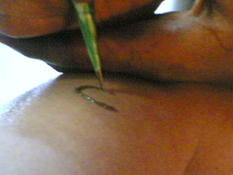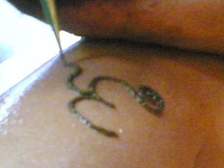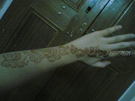 먼저 한 손을 내 팔 위에 조심스레 올려놓고 헤나콘을 든 손을 그위에 살며시 올려놔 자세를