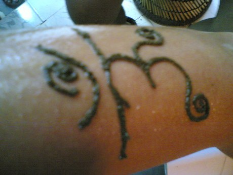 옴자는 팔뚝에 그리고 다른 문양은 검지 손가락으로 문양이 오게 따로 주문을 했다.