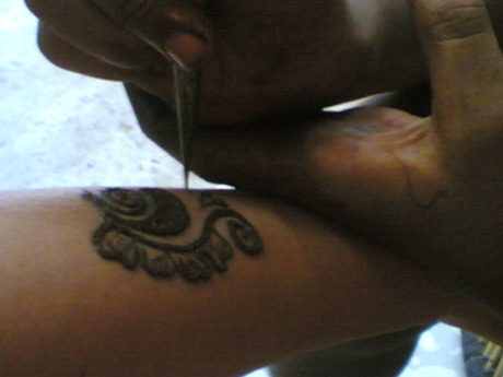 헤나가 피부에 잘 붙고 잘 굳게 하기 위함인 듯했다.