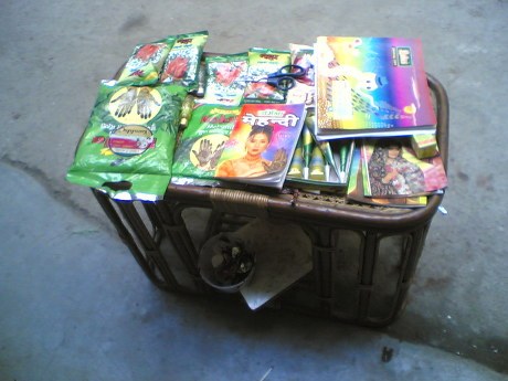그 책상 위에는 무언가가 쌓여 있고. 뭐지? 하고 자세히 보니 그것은 헤나였다.