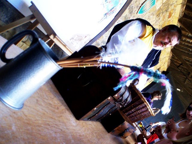 성을 대충 둘러본 후에는 이것저것 프로그램에 참여할 수 있는데 우선 매직스틱을 만들어 보는 레슨에 참여했다. 우선 마법사님께서 만드는 방법을 시범으로 보여주면 각 참가자는 자신이 원하는 스틱과 깃털, 금박음박의 실 등을 고른 후 자리에 가서 자신만의 마법의 지팡이를 만들면 된다. 어떤 기털을 고를까 어떤 색의 실로 마법의 지팡이를 돌돌 말아야 할까 무척이나 고심했고.
