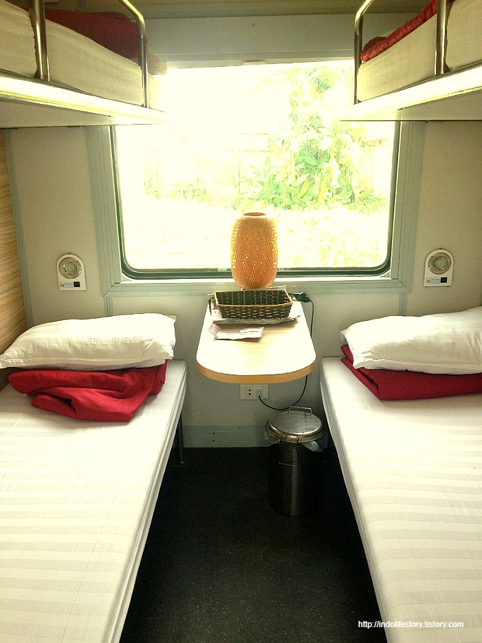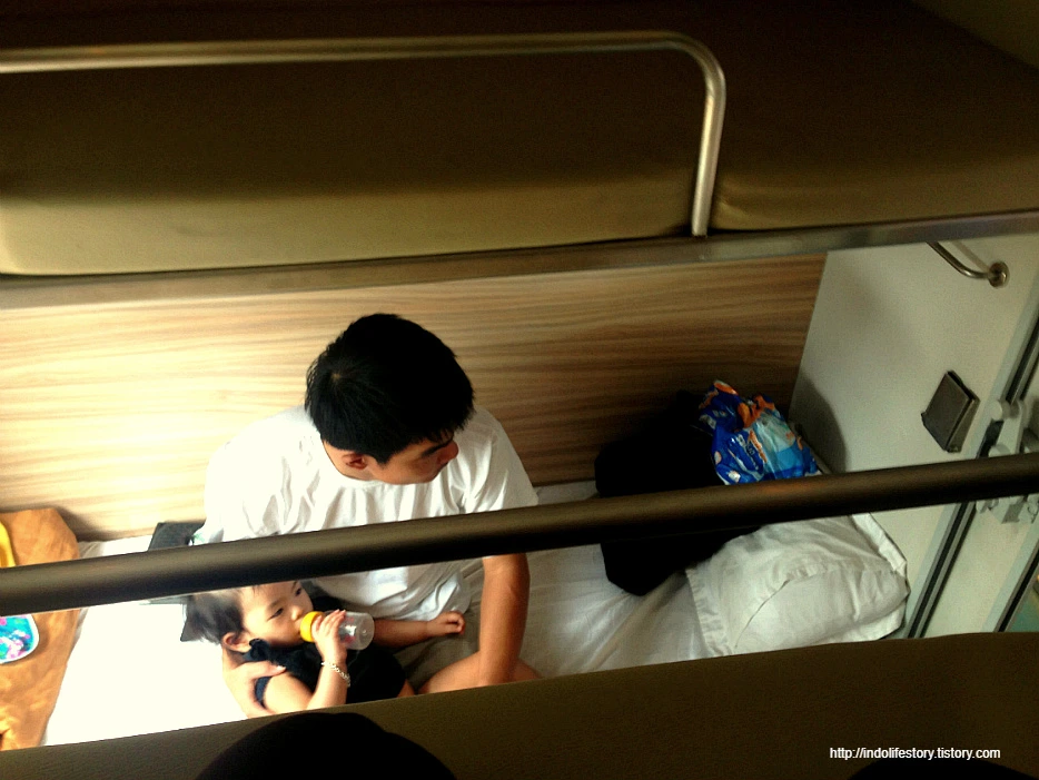 물론 에어컨이 있고 각 캐빈 당 4개의 침대가 놓여 있다. 푹신한 침대인 만큼 매트리스가 두텁고 침대가 제법 넓다. 1층이나 2층이나 침대에 앉아서 책을 읽을 수도 있고 승객들도 거의 혼자 타는 사람들이 많아 조용하게 시간을 보낼 수가 있다.