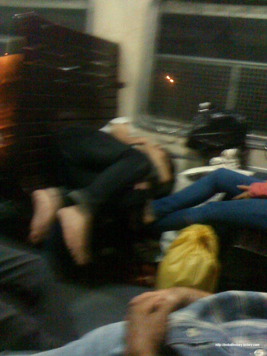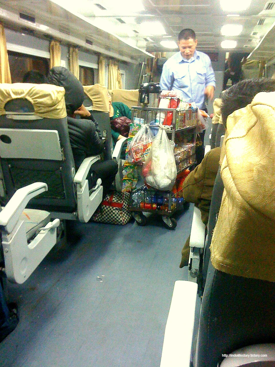 밤에는 모기가 있기도 하고 현지인들이 돗자리를 바닥에 깔고 드리 눕기도 해서 불편하다. 한 번은 현지 아줌마가 배가 아프다고 내 자리까지 차지하고 드러눕는 바람에 한 시간 정도 식당칸으로 피신했다 돌아왔더니 탁자에 올려놓았던 내 1리터짜리 생수를 누가 반쯤 마셨던 흔적을 발견하고 뜨악했던 적도 있다.