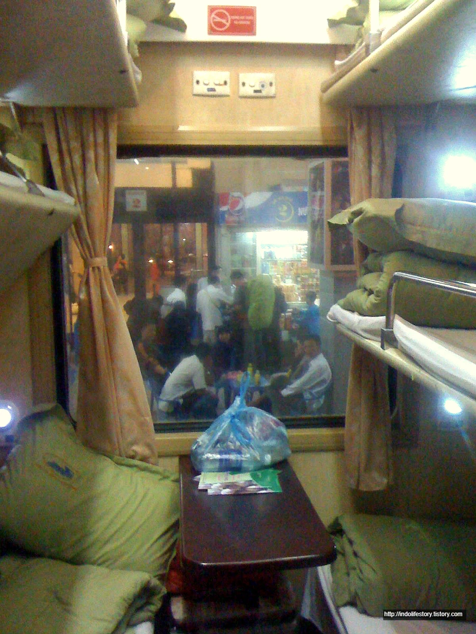 슬리퍼까지 놓여 있다니!!! 화장실 갈 때 이용하면 좋다. 한 번은 베트남 아줌마가 내가 벗어 둔 조리를 신고 화장실을 갔다 오길래 다음부터는 내 조리를 신지 말아달라고 강력히 부탁하기도 했다. 주로 아래층 침대를 사지만 미리 예매를 하지 않으면 금방 팔리기 때문에 최소 일주일 전에 예매를 해두는 편이 좋다. 다만 장거리가 아닌 단거리는 3일 전부터 표를 팔기도 하기 때문에 주의해야 한다.
