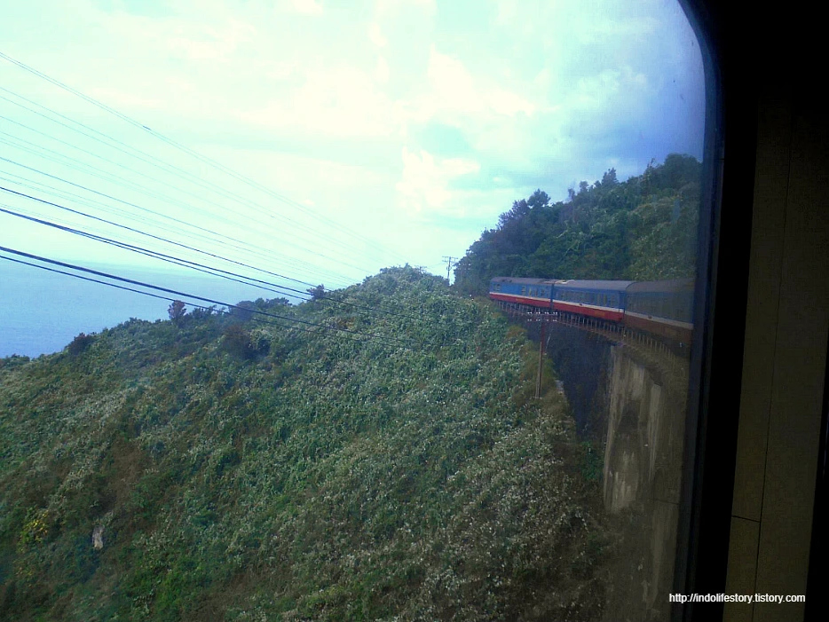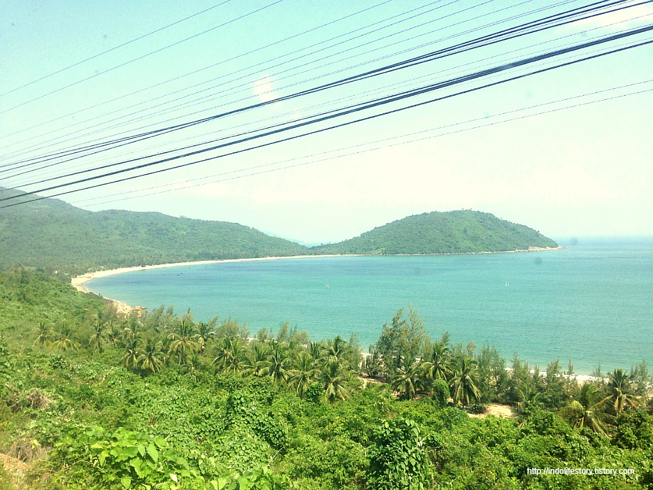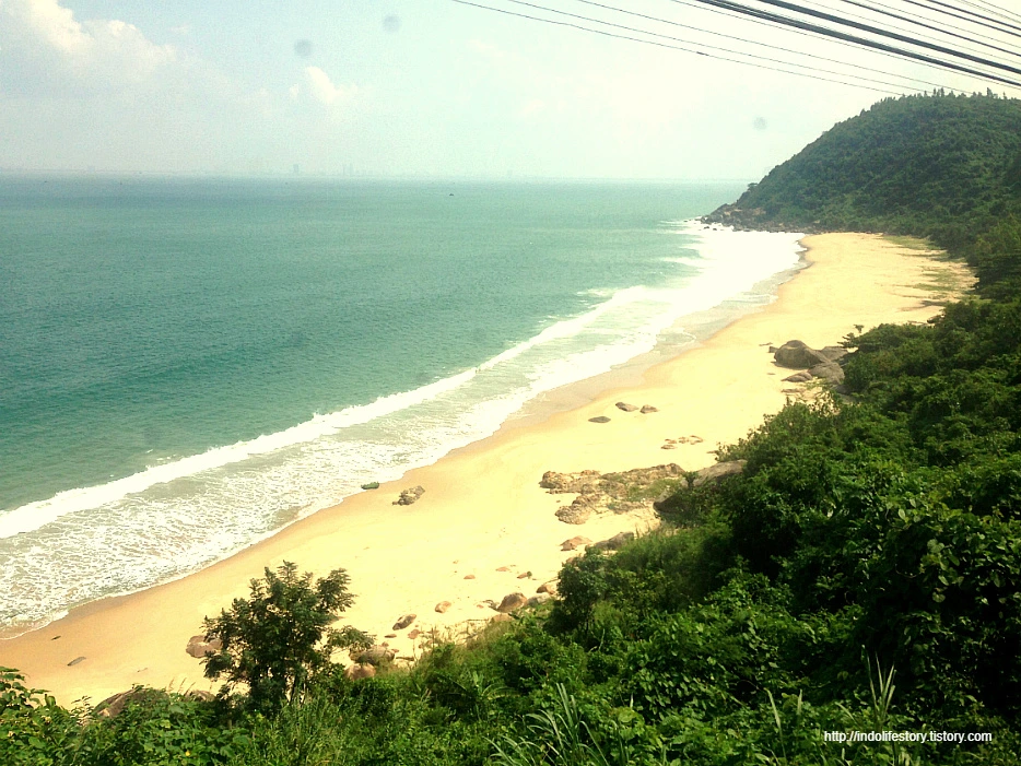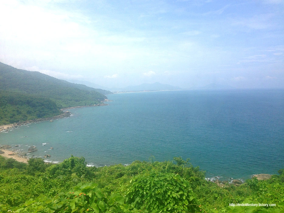 다낭에서 후에를 가는 구간. 2시간 반 가량이 걸리며 다낭이나 후에에서 출발한 지 한 시간가량 지나면 볼 수 있는 절벽 바닷길.