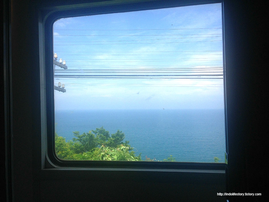 귀찮다면 이렇게 각자의 자리에서도 볼 수 있는 예쁜 바다. 이 바닷길을 보기 위해 많은 여행자들이 기차를 탄다.