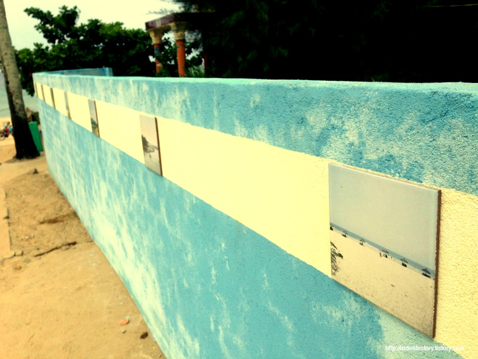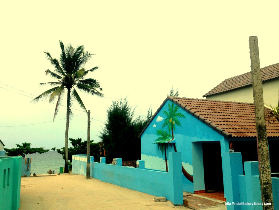 역시 바다색과 같은 하늘색이 시원한 느낌을 주었다. 함께 그려진 야자수와 실제 서있는 야자수의 조화.