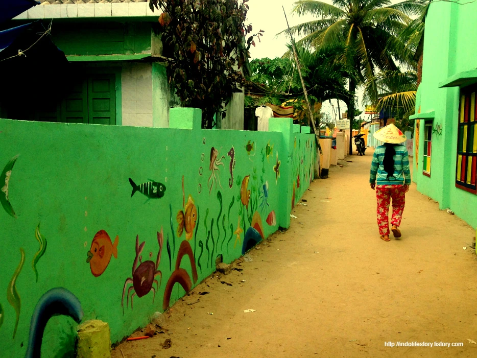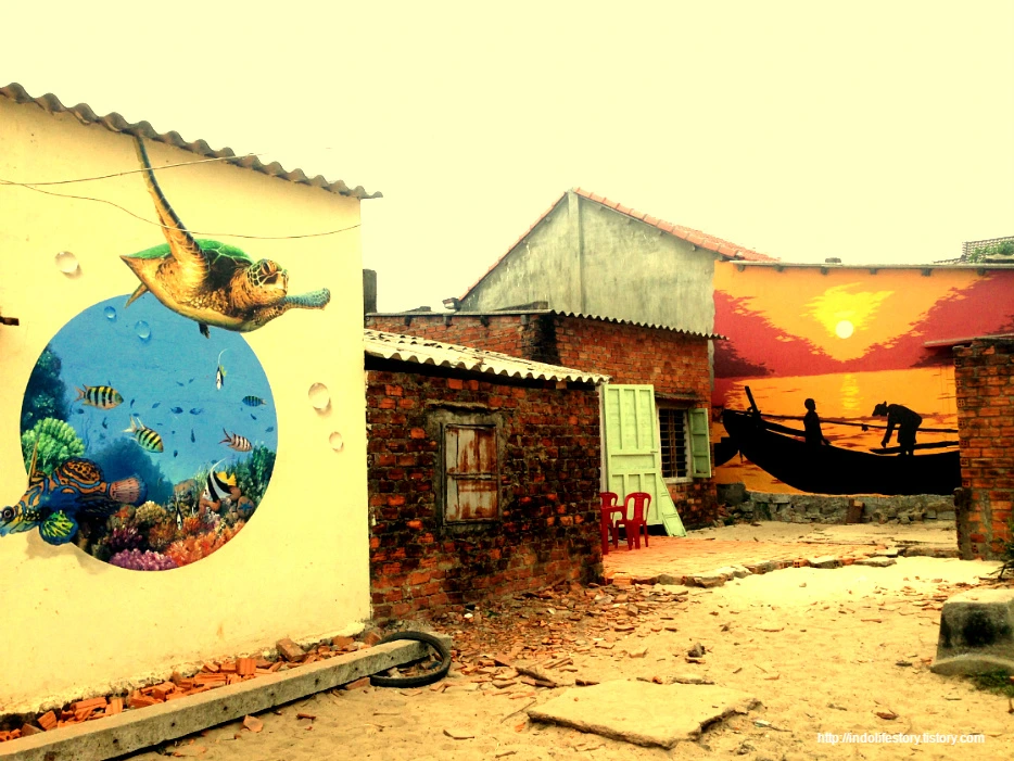 베트남 중부의 땀끼 (Tamky)의 이 작은 어촌마을은 한국 국제교류재단(KF)의 지원 아래 진행된 'Art for a Better Community'라는 프로젝트로 아름답게 재탄생된 곳으로 현재는 외국 관광자보다는 현지 관광자들에 더 인기가 있는 곳이다. 한국의 화가들이 이곳으로 직접 와 베트남 현지 화가들과 합세해 집과 담장에 알록달록 그림을 그려 더 살기 좋은 곳으로 탄생시키고자 하는 프로젝트라고 했다.