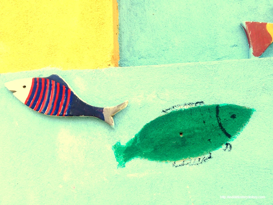정말로 예술작품 같은 거리도 있었다. 아기자기하게 타일로 붙여 놓은 물고기들이 참 귀여웠다.