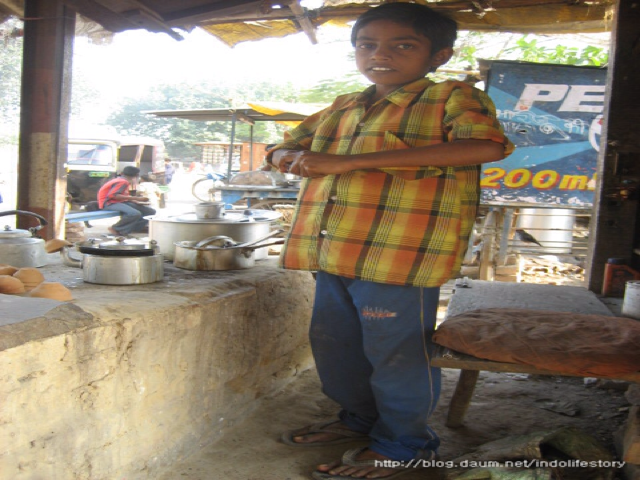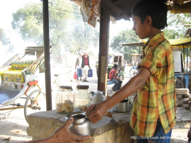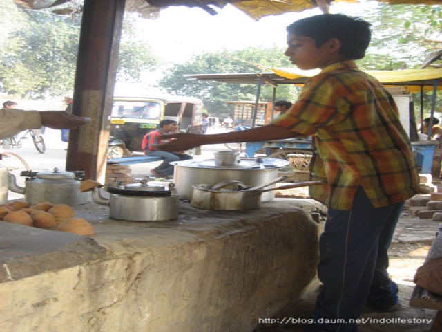 아직 채 10살도 되지 않았다는 라훌이 일하고 있는 이 길거리 찻집은 우리 돈으로 170원(상상할 수 없는 가격!)씩 하는 작은 흙 컵에 인도식 홍차인 짜이를 전문으로 파는 곳이었다.