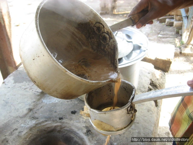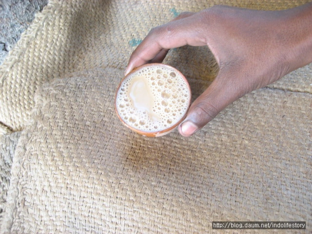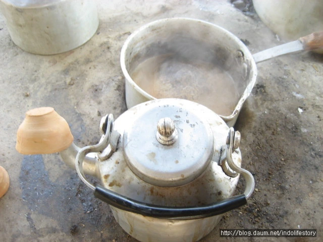 소꿉놀이에나 등장할 법한 작은 흙 컵들과 낡은 주전자 그리고 그 옆에 펄펄 끓고 있는 우유 단지가 전부인 이 찻집. 선반도 그저 시멘트로 발라버리면 끝인 어떻게 보면 소박한 느낌만 남아 있는 이곳에서 나는 답답한 속을 잠시나 풀 수 있었는데.