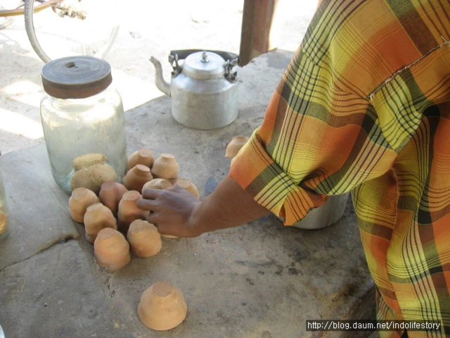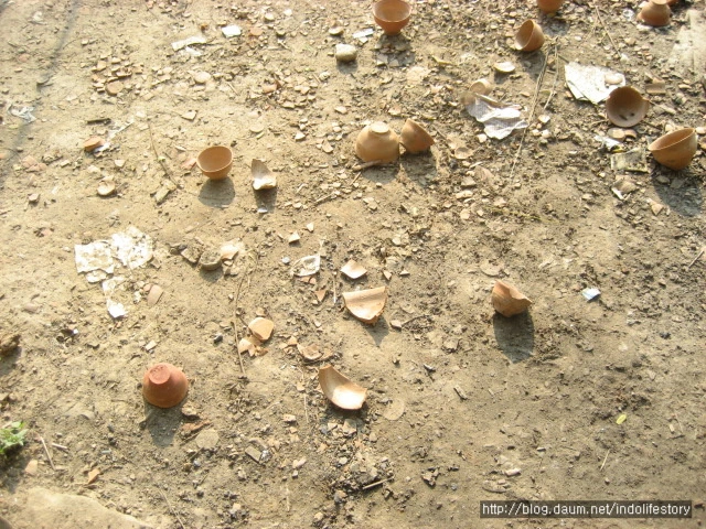 오토릴샤 왈라는 짜이를 한 잎에 다 털어 넣고는...... 흙컵을 바닥으로 던져 버렸다. 화 나는 일이라도 있는 것일까? 하고 쳐다보는 나를 본 라훌은 이 컵은 원래 마시고 던져 버리는 것이라고 알려 주었다.
