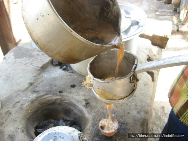 한 잔의 짜이가 만들어졌다. 하나의 작품 같은 귀여운 짜이가.