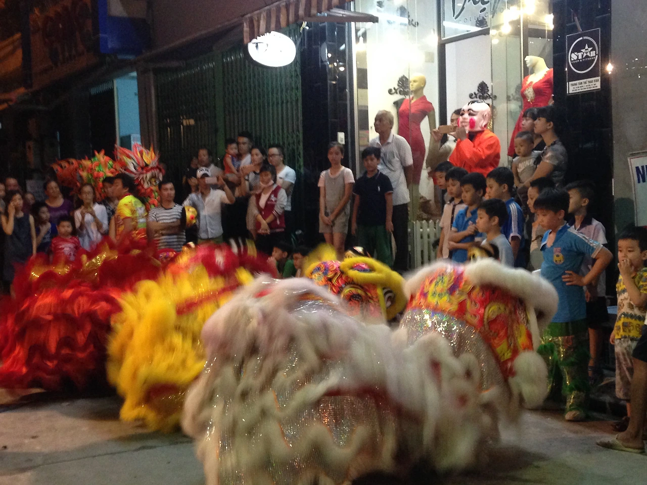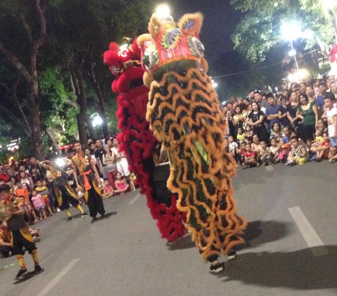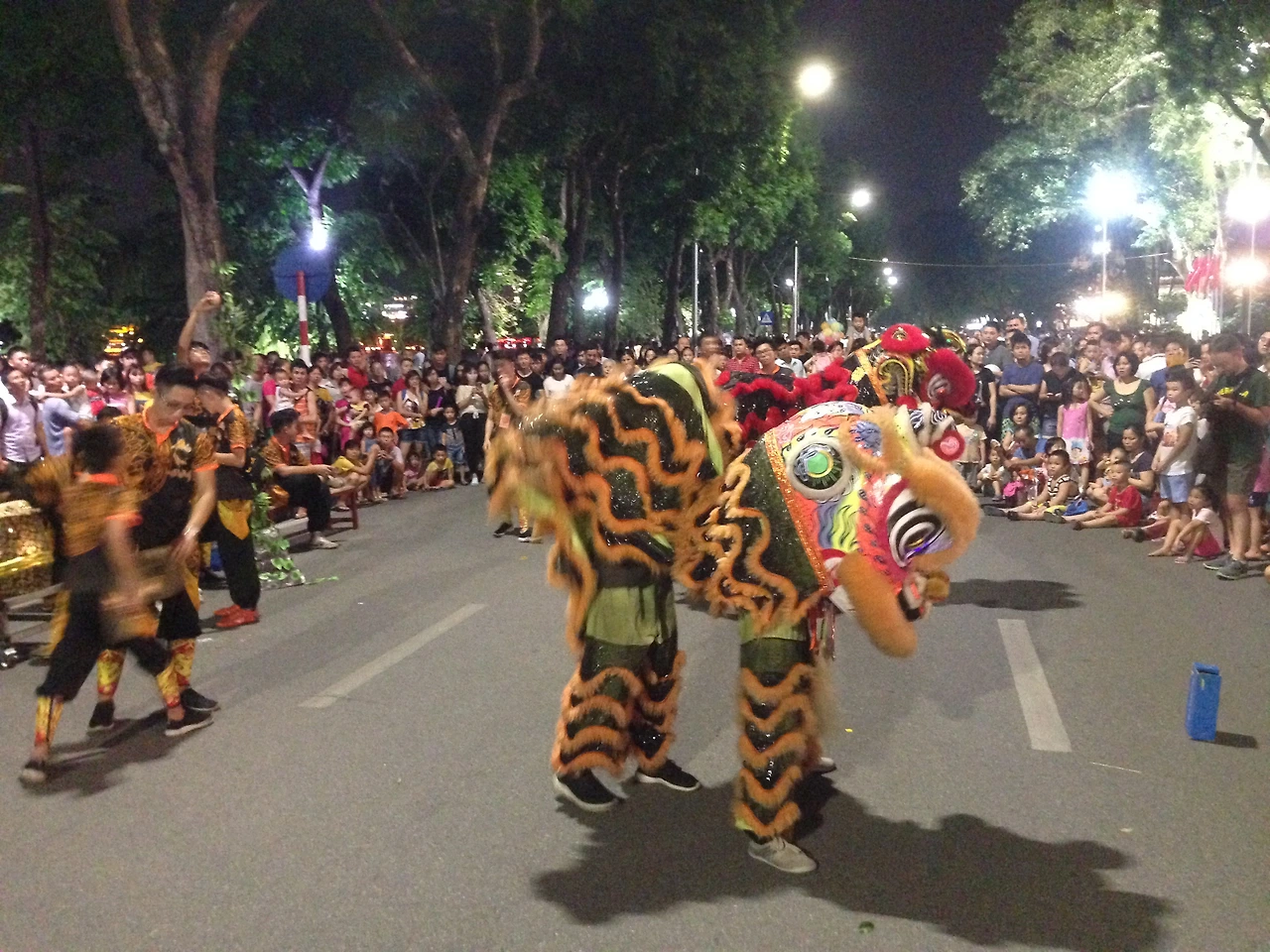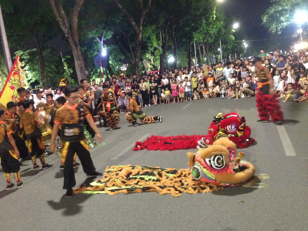 밤이 되면 베트남 추석의 하이라이트라고 할 수 있는 사자춤의 퍼레이드가 거리마다 펼쳐진다. 베트남 사람들은 특히 추석을 맞아 앞으로 일 년 간 가정에서의 평화를 그리고 각 상점에서는 일 년간 장사가 잘 되어달라고 비는 의미로 사자춤을 추는 소년들을 초대해 춤을 추게 한다.