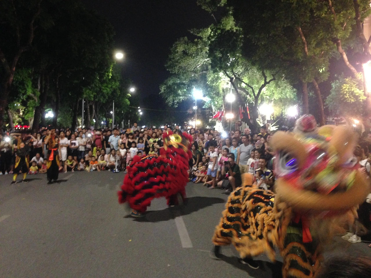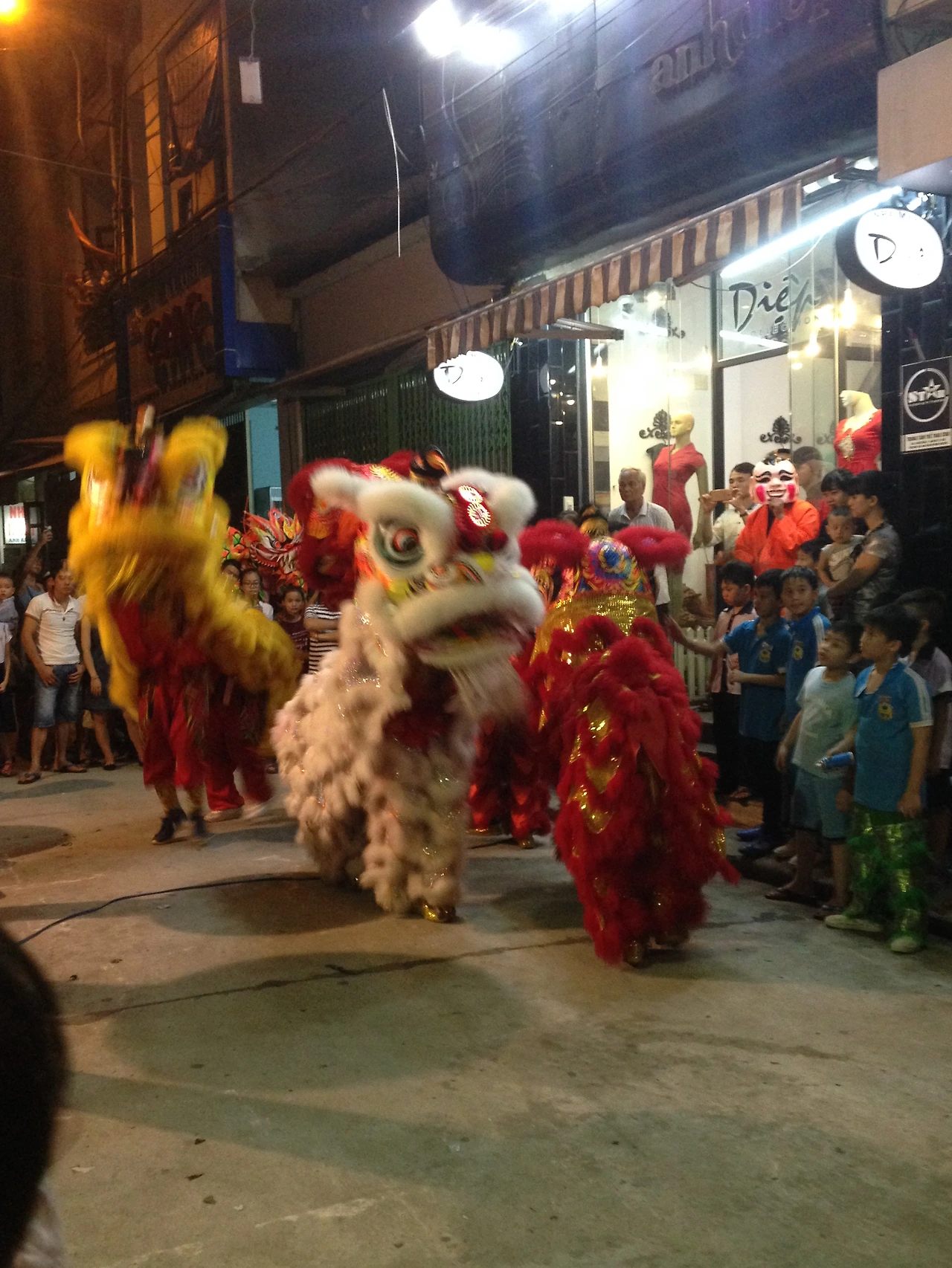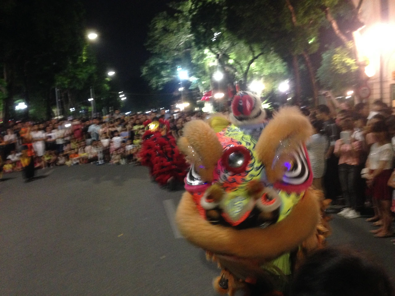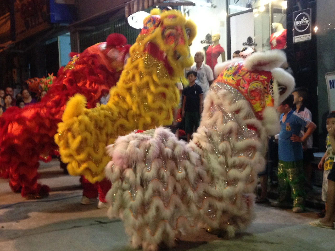 밤이 되면 베트남 추석의 하이라이트라고 할 수 있는 사자춤의 퍼레이드가 거리마다 펼쳐진다. 베트남 사람들은 특히 추석을 맞아 앞으로 일 년 간 가정에서의 평화를 그리고 각 상점에서는 일 년간 장사가 잘 되어달라고 비는 의미로 사자춤을 추는 소년들을 초대해 춤을 추게 한다.