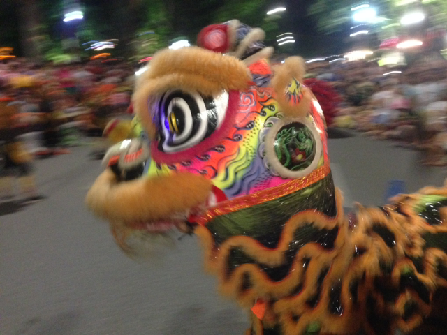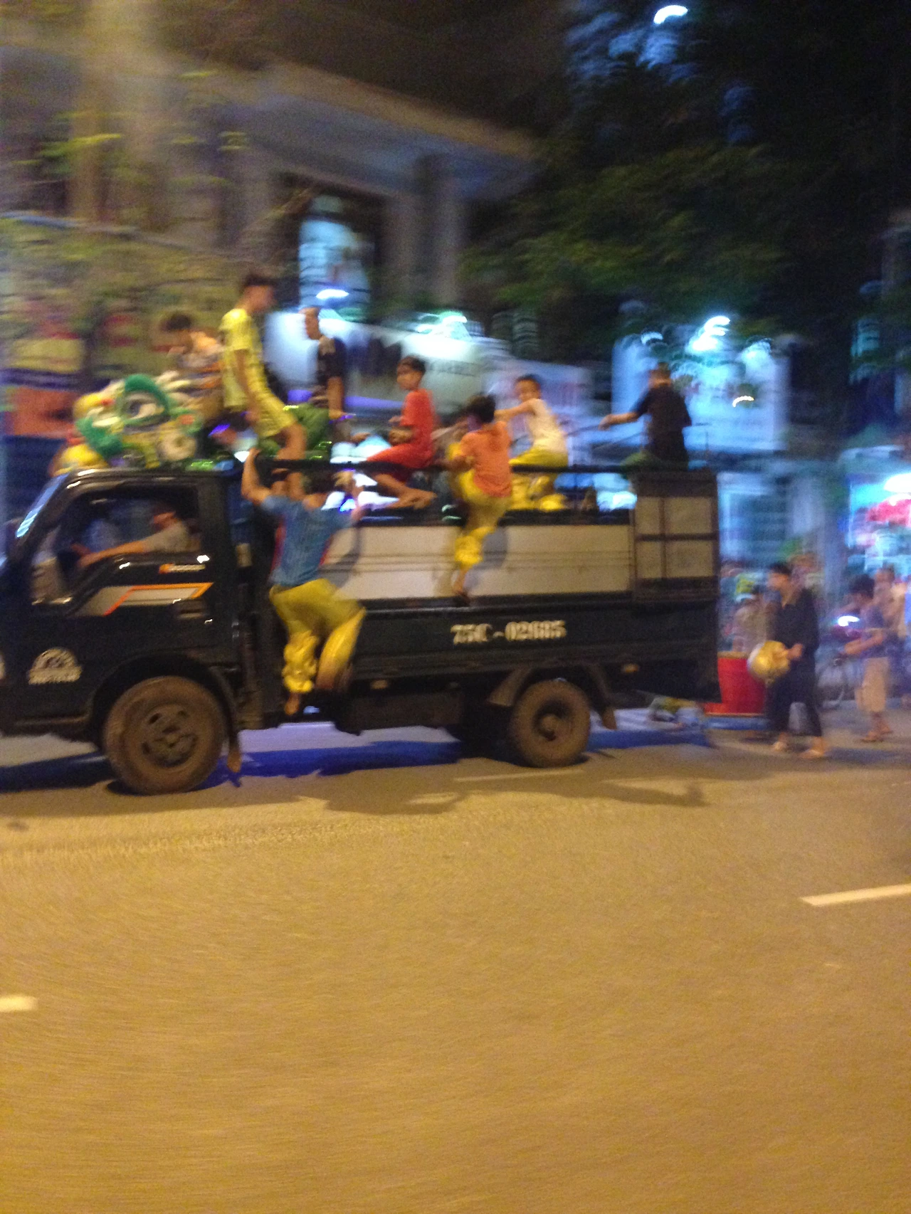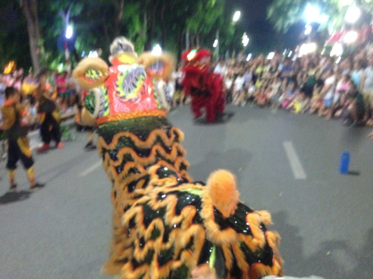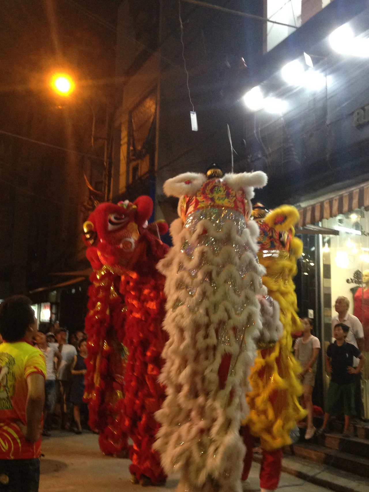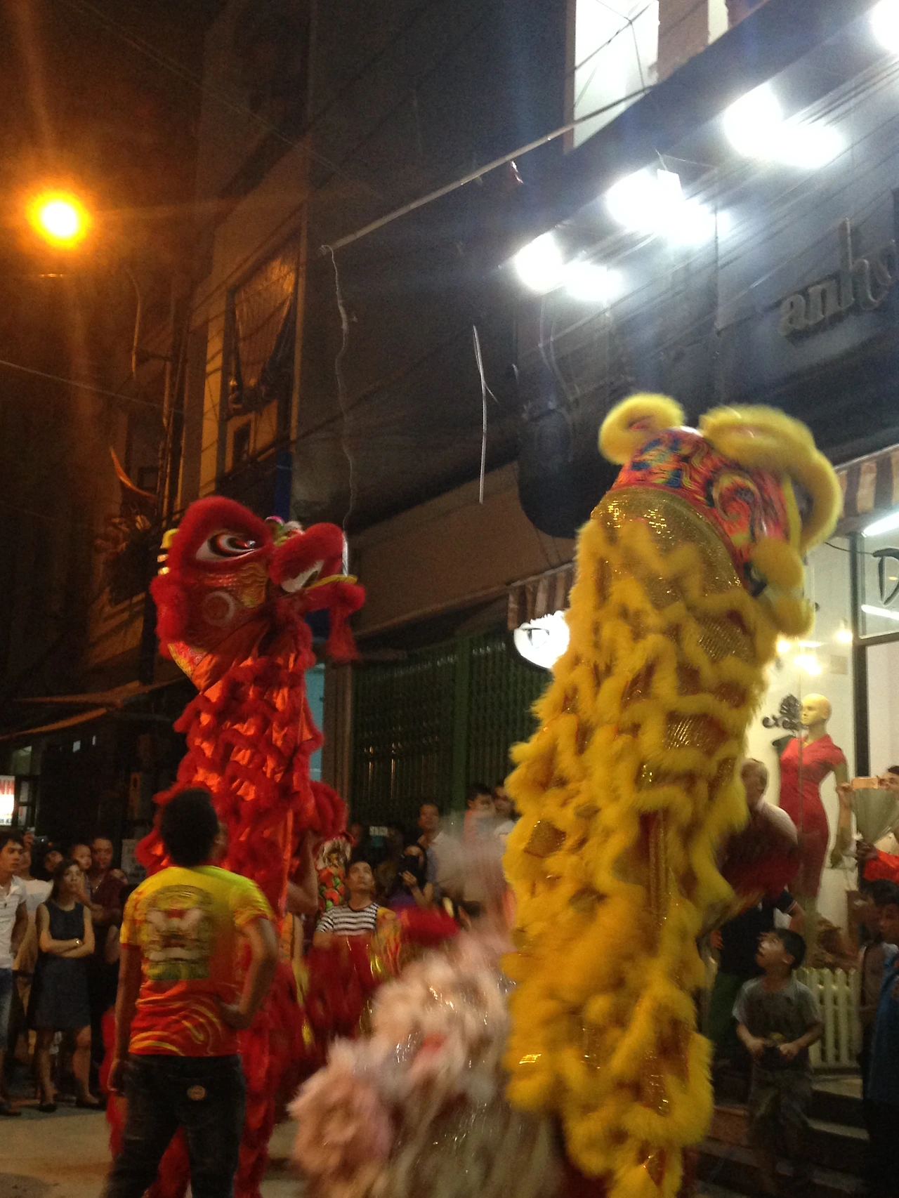 밤이 되면 베트남 추석의 하이라이트라고 할 수 있는 사자춤의 퍼레이드가 거리마다 펼쳐진다. 베트남 사람들은 특히 추석을 맞아 앞으로 일 년 간 가정에서의 평화를 그리고 각 상점에서는 일 년간 장사가 잘 되어달라고 비는 의미로 사자춤을 추는 소년들을 초대해 춤을 추게 한다.