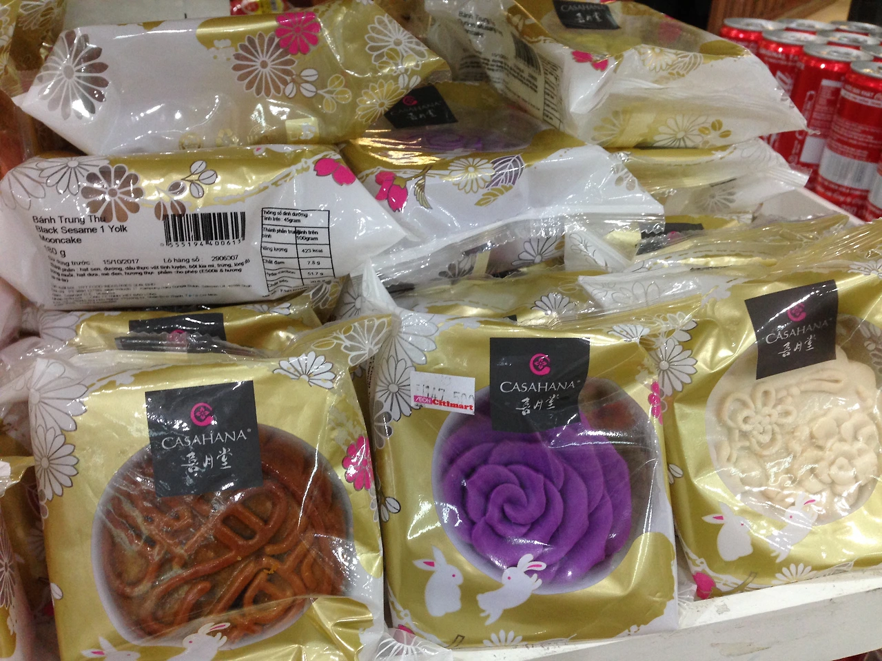 중국의 문화가 들어와서인지 거리에는 월병을 파는데 저렴한 것부터 아주 비싼 것까지 가격도 제각각이다. 보통 월병 하나에 30,000동, 즉 1500원부터 시작이 되고 비싼 월병에는 금박까지 붙여 놓았다고 한다. 요즘은 오리지널 월병뿐만 아니라 초콜릿이나 녹차 맛 등의 월병들도 팔고 더 예쁜 문양까지 새겨 넣은 월병들도 많이 보인다. 원하는 월병을 제각기 골라서 예쁜 선물 상자에 월병을 담아서 지인에게 선물을 하는데