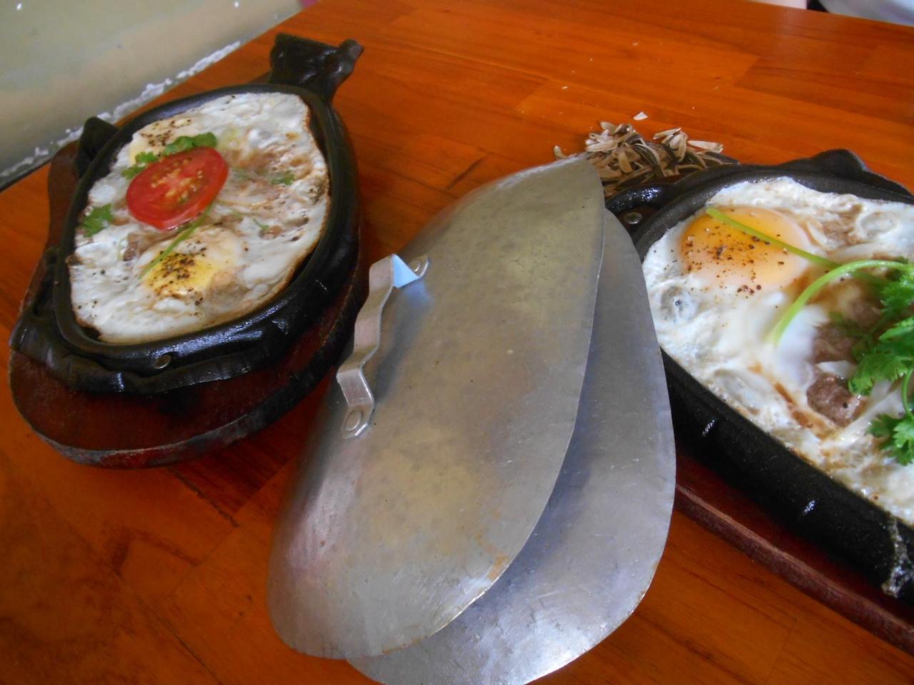 어느 정도 규모가 있는 베트남 현지인 카페를 가면 아침식사를 파는 곳이 간혹 있다. 특히 현지인들이 카페에서 즐겨 먹는 아침 식사로는 지글지글 스테이크 판 위에 고기와 계란 프라이를 올린 요리로 역시 베트남 식사에서는 빠질 수 없는 바게트와 함께 먹는 요리이다.