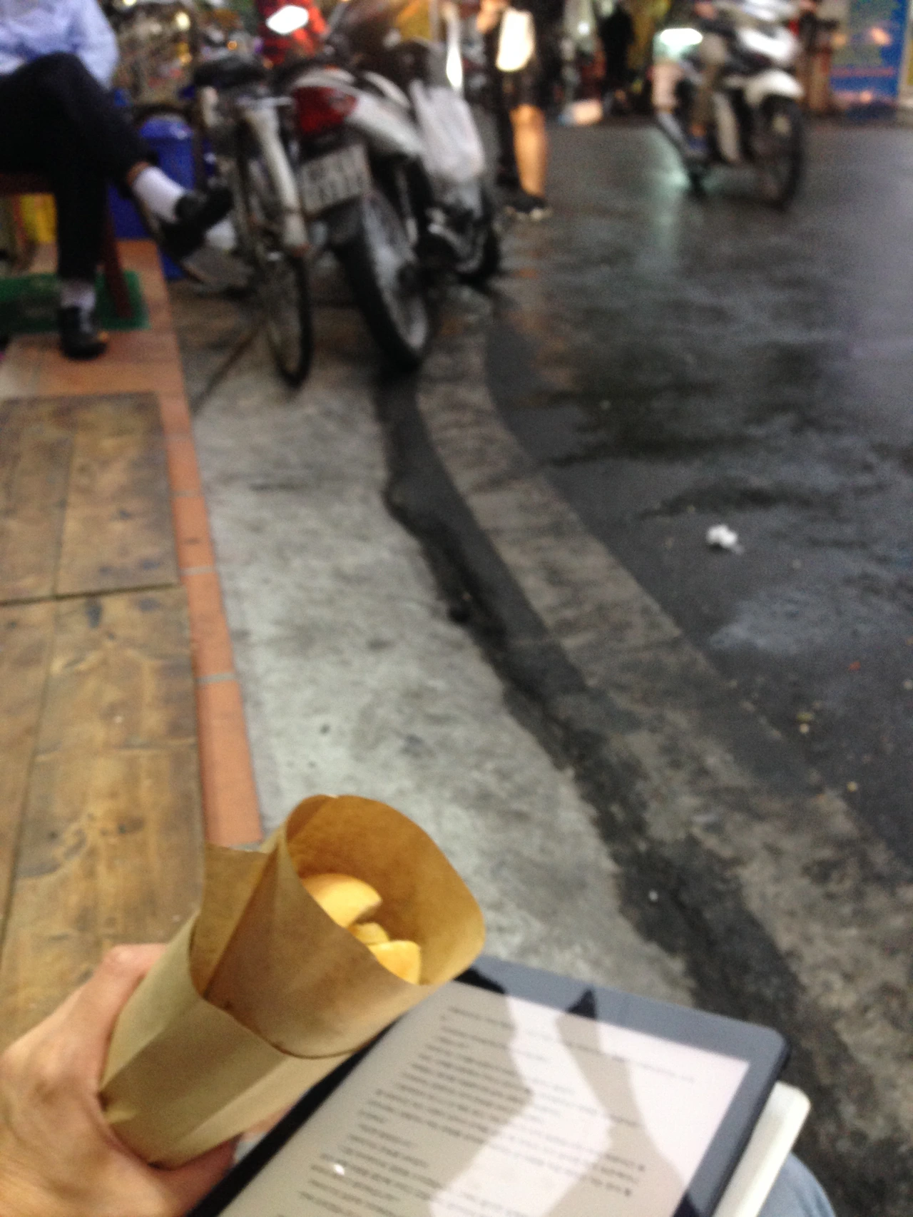 길거리에 앉아 어색함을 감추려 일부러 이북을 펼쳐 읽으며 반미도 먹을 수 있고.