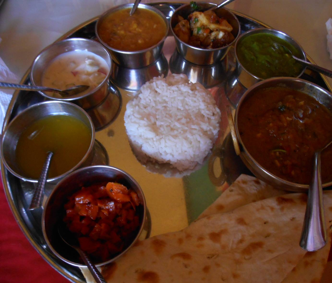 인도의 백반이라는 탈리도 마찬가지이다. 사실 인도의 탈리는 비싼 집에 가서 먹으면 너무 반찬이 많고 양도 많지만 혼자서 골라 먹는 재미가 있는 최상의 혼밥을 즐길 수 있는 음식 중 하나인 것 같다. 이 큰 장점은 호기심이 많아 뚫어지게 쳐다보거나 간혹 말을 걸어오는 인도인들로 인한 불편함을 어느 정도 해소해 주는 요소이기도하다.
