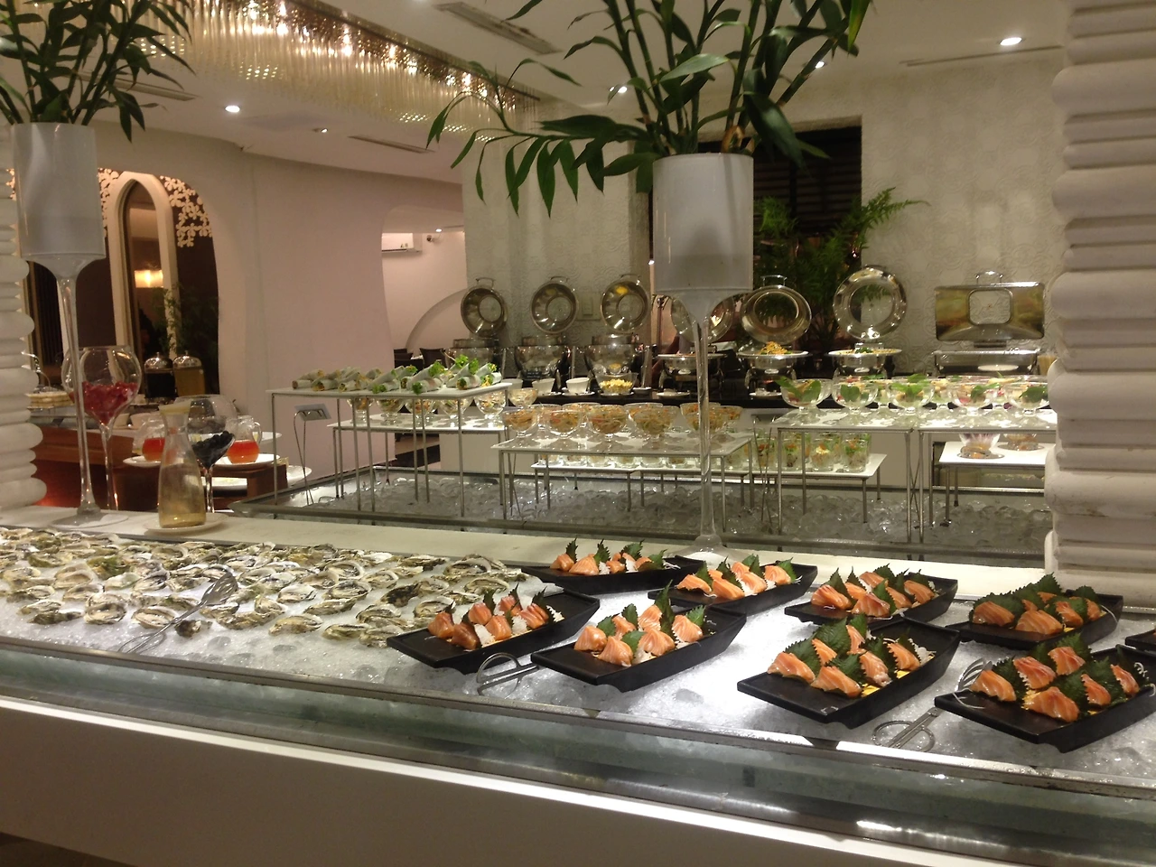 그리고 음식이 조리되기를 기다리는 것이 아니라 음식을 들고 와서 바로바로 먹을 수 있기 때문에 그냥 먹는 데에 집중하다 보면 주변에 누가 나를 쳐다보던 말던 신경이 많이 쓰이지 않는다. 해외에서 뷔페에 혼자 가면 이상하게도 뷔페 직원들이 무척 친절하고 많이 신경을 써주기도 했다. 가난한 학생 혹은 여행자의 신분으로 홀로 방문하였기에 따로 음료를 주문하지 않아도 바로 알아채고는 OK 해 주는 그들이 무척 고맙기까지 했다.