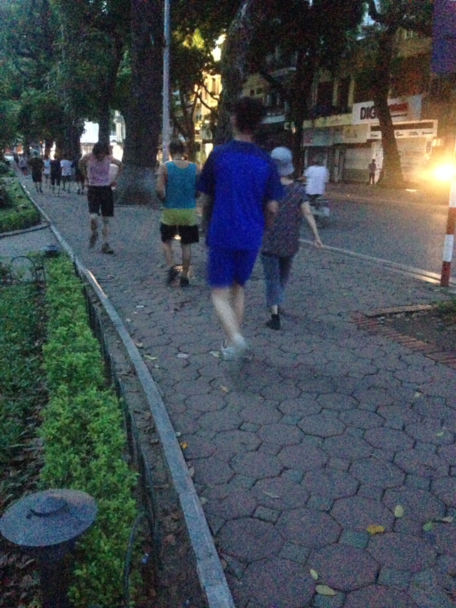 나는 바로 전날 베트남 중부 훼 지역에서 하노이로 출발하는 낮 3:30분 기차를 타고 정확히 13시간 20분 만인 새벽 4시 50분에 하노이 기차역에 도착했다. 기차에서 자는 잠은 아무리 잘 잤다고 자부한다고 해도 다음 날이면 정상생활이 힘들 정도로 몸이 뻐근하고 피곤하다. 아무튼 그런 몽롱한 상태로 나는 하노이 역 앞의 시멘트 계단에 다른 서양 여행자들 사이에 쭈그리고 앉아 그렇게 30분을 역 앞에서 멍하니 앉아 있었다. 그리고 날이 채 밝지도 않았는데 겁도 없이 하노이 역을 떠나 여행자 거리가 있는 호안끼엠 호수 주변으로 걸었다. 그렇게 20분쯤 어두운 길을 혼자 걷다 보니 아침 운동에 빠진 하노이안들이 보이고 나는 그들과 함께 천천히 호수를 걸었다.