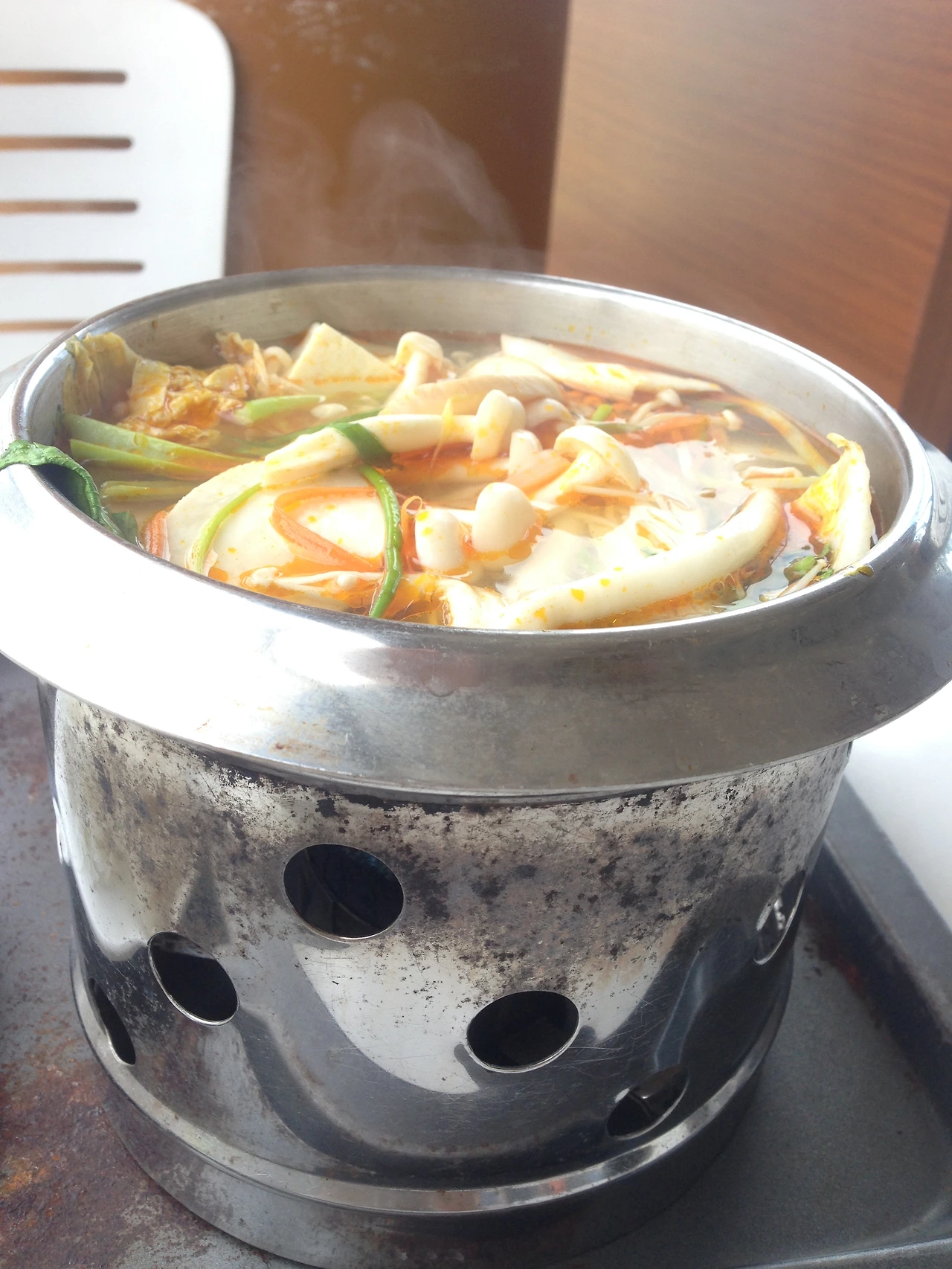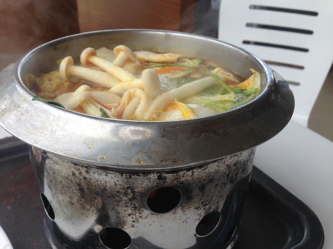 우리나라처럼 버너로 냄비를 데우는 방식이 아니라 냄비 밑에 고체연료를 넣고서 불을 붙여 국물을 끓이는 형식이라 안전한 점은 있지만 국물이 천천히 끓어오르고 연료가 다 타면 중간에 꺼지기도 하여 불편하지만 만약 국물을 더 끓이고 싶다면 연료를 새것으로 교체해 달라고 하면된다.