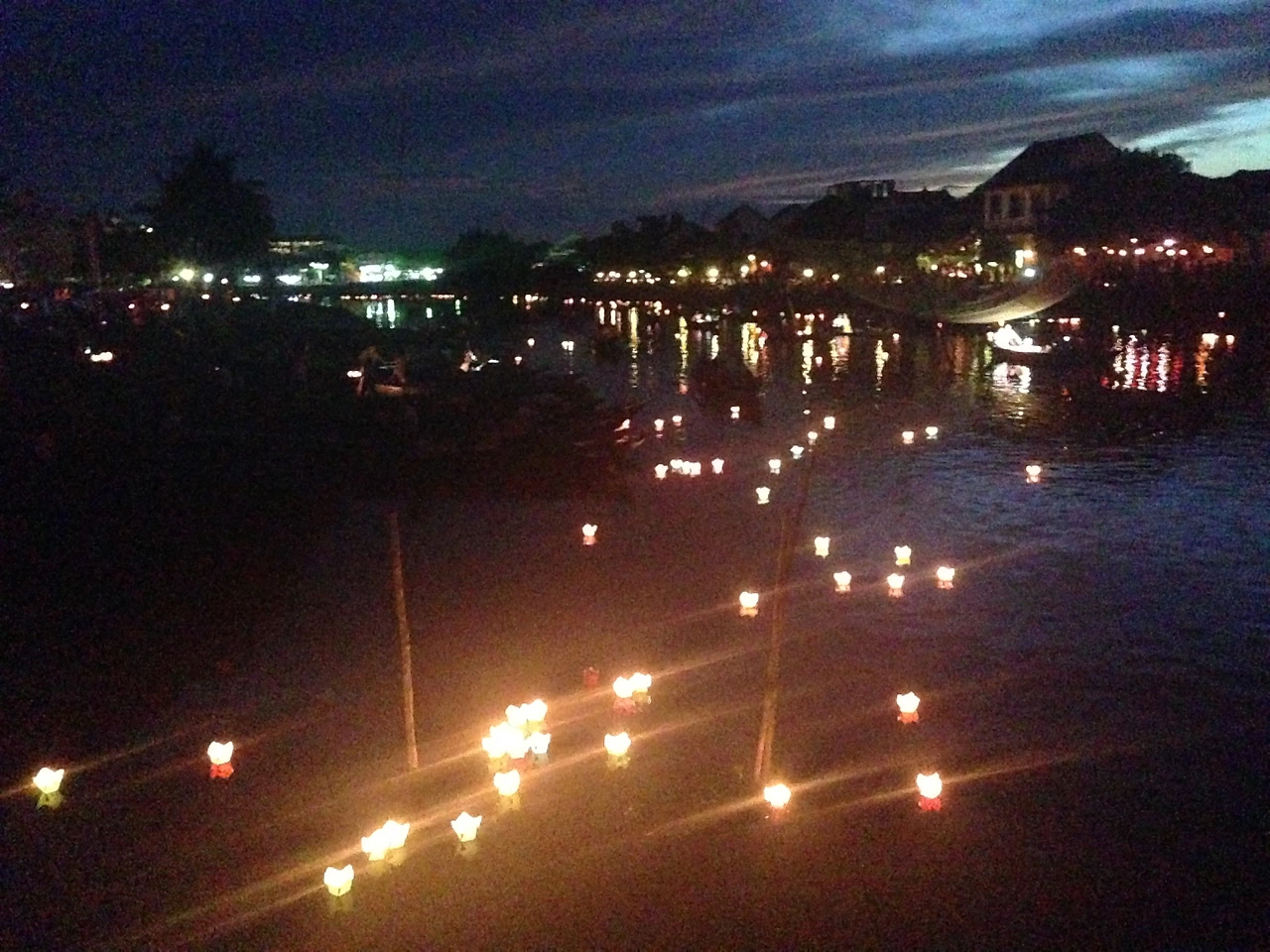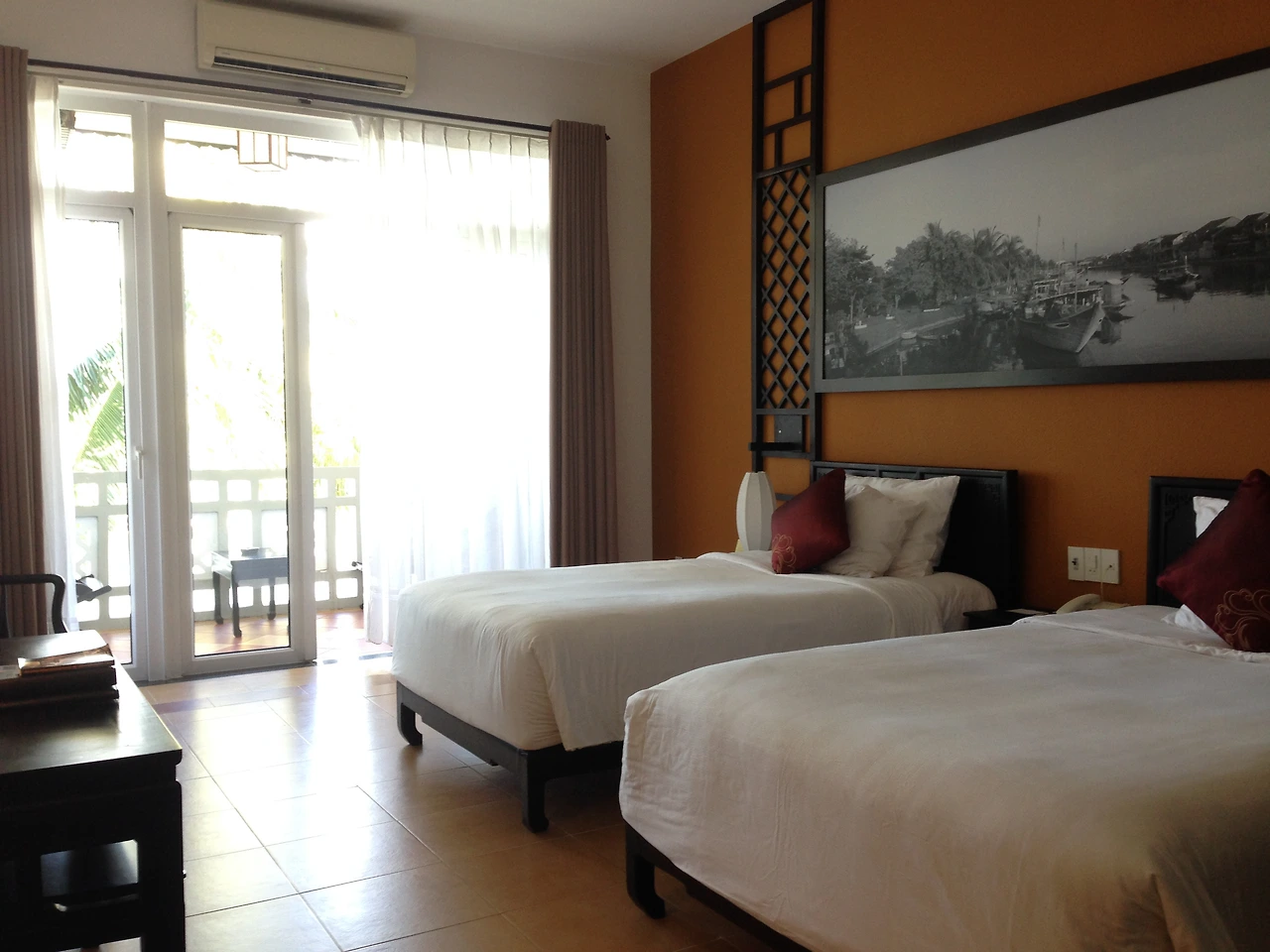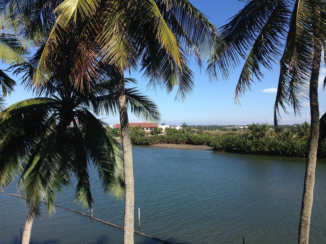 나의 일터인 베트남 훼 (Hue)의 더운 열기와 먼지 가득한 공기에서 벗어나서 인지 왠지 몸이 좋아지는 느낌에, 비록 거리는 그리 멀지 않아도 오래간만에 떠난 여행이라 그런지 마음이 무척 즐거웠다. 평소에는 예약할 생각도 못했던 4 스타 리조트에 도착해 짐을 풀어놓고 베란다로 나가니 펼쳐진 예쁜 코코넛 나무와 푸른 강에 크게 숨을 쉬어 보았다. 마음이 맞는 친구와 함께 와서 그런지 무언가 마음이 한껏 즐거웠다. 한숨 잠을 자고 호이안 시내로 길을 나섰다.
