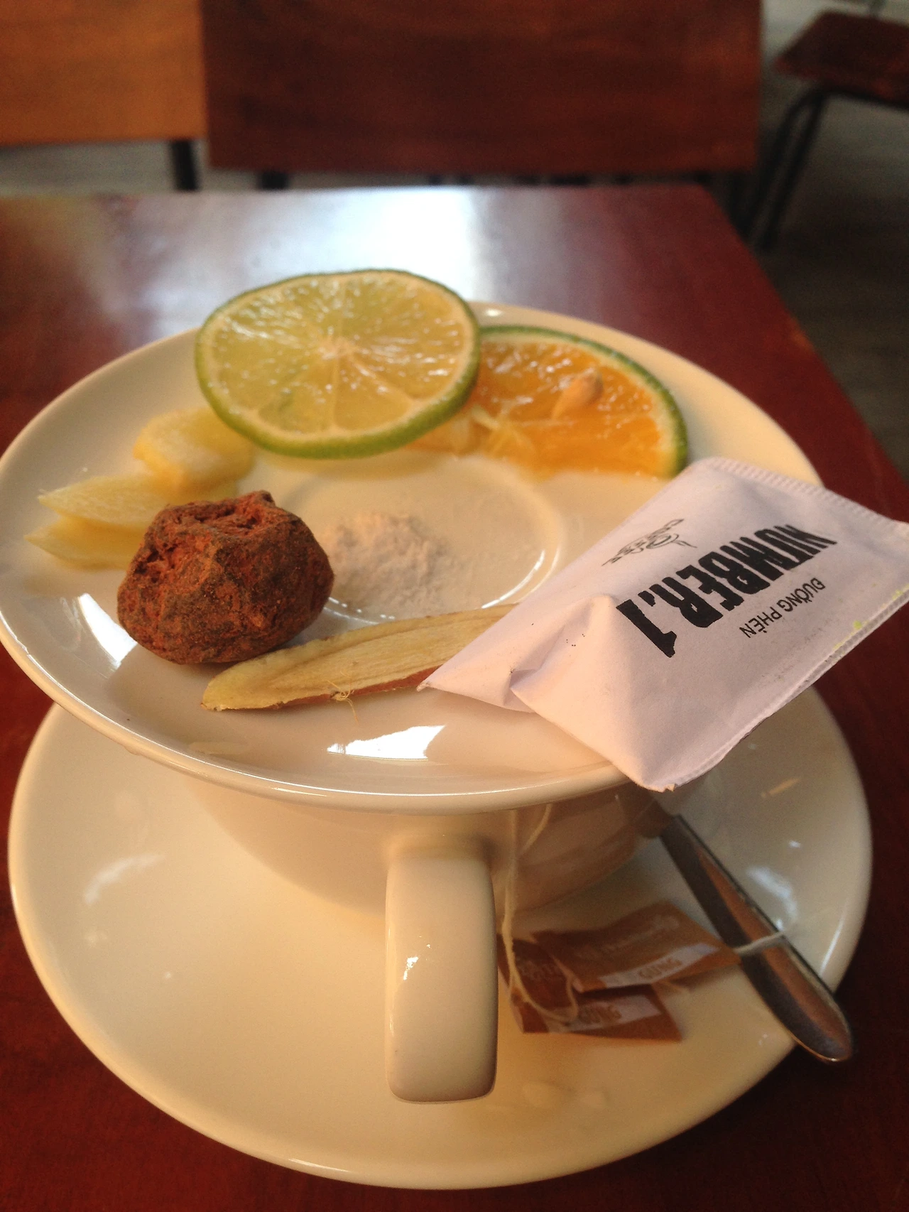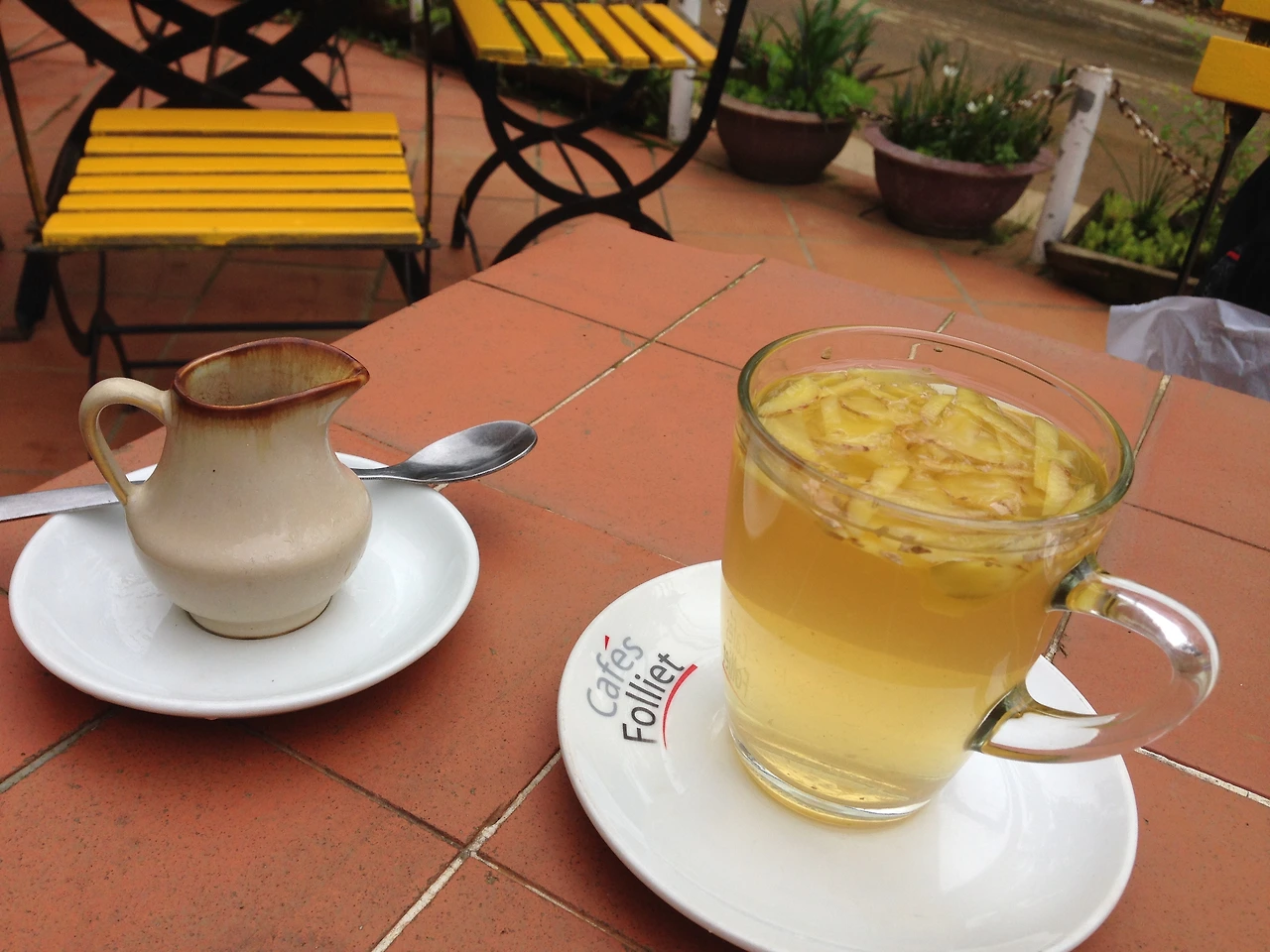 베트남에서는 특히 진저 티를 많이 시켜 먹었다. 생강은 위장을 소독시켜 주는 기능이 있다기에 틈만 나면 생강차를 마시곤 했다. 간혹 카모마일 티에 허니를 넣어 마시기도 했고. 차가운 음료나 커피는 거의 끊어버렸지만 덕분에 차를 즐길 수 있는 능력이 생겨났다.